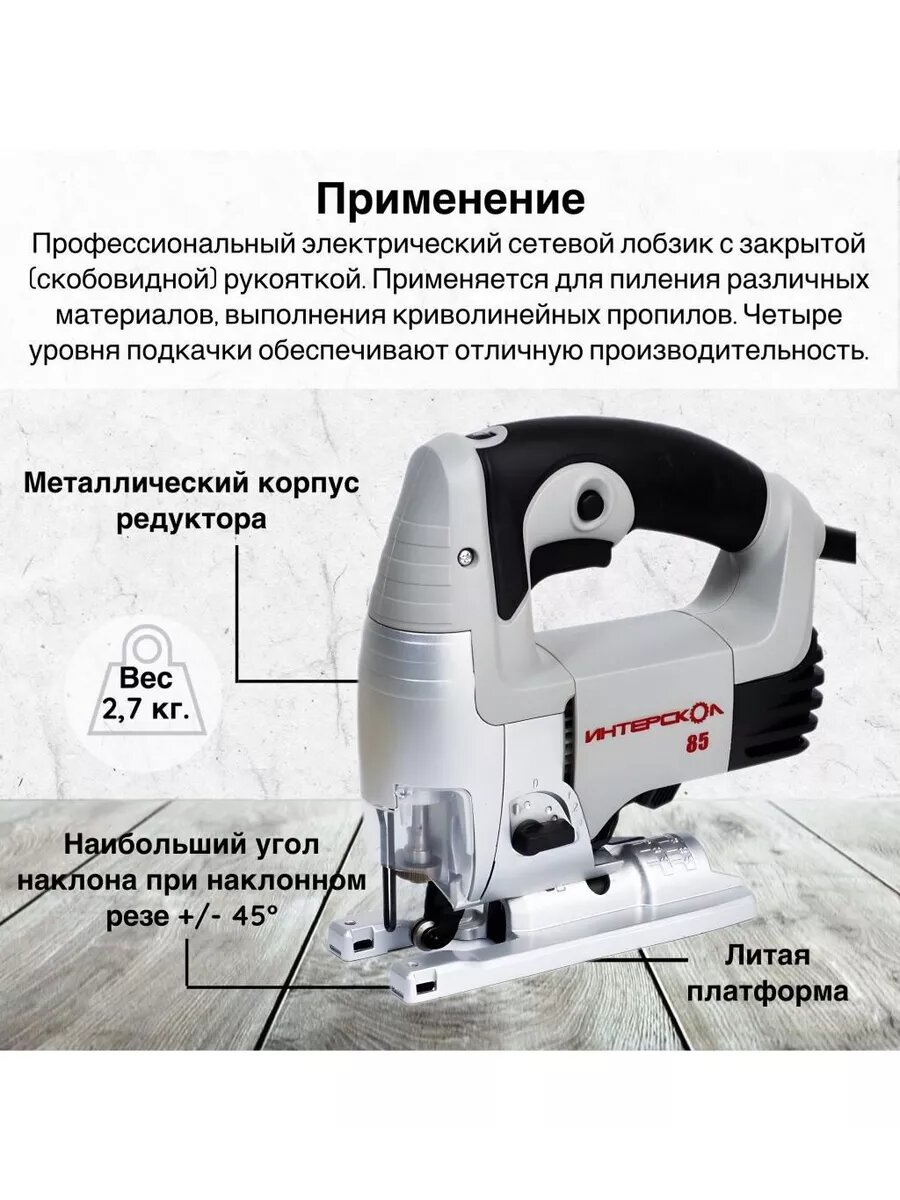 Лобзик ИНТЕРСКОЛ МП-85/600Э, 701 Вт, 3000 ход/мин, 85 мм 156.1.1.00 информация:
