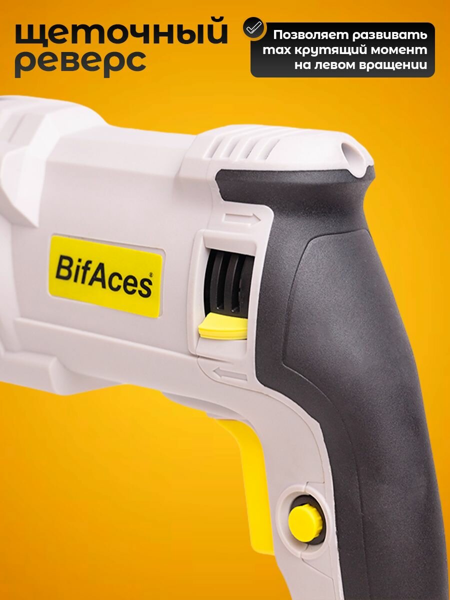 10 цен на Перфоратор BifAces 850Вт, сила удара 3 Дж, скорость вращения 1150 об/мин, частота 5100 уд/мин.