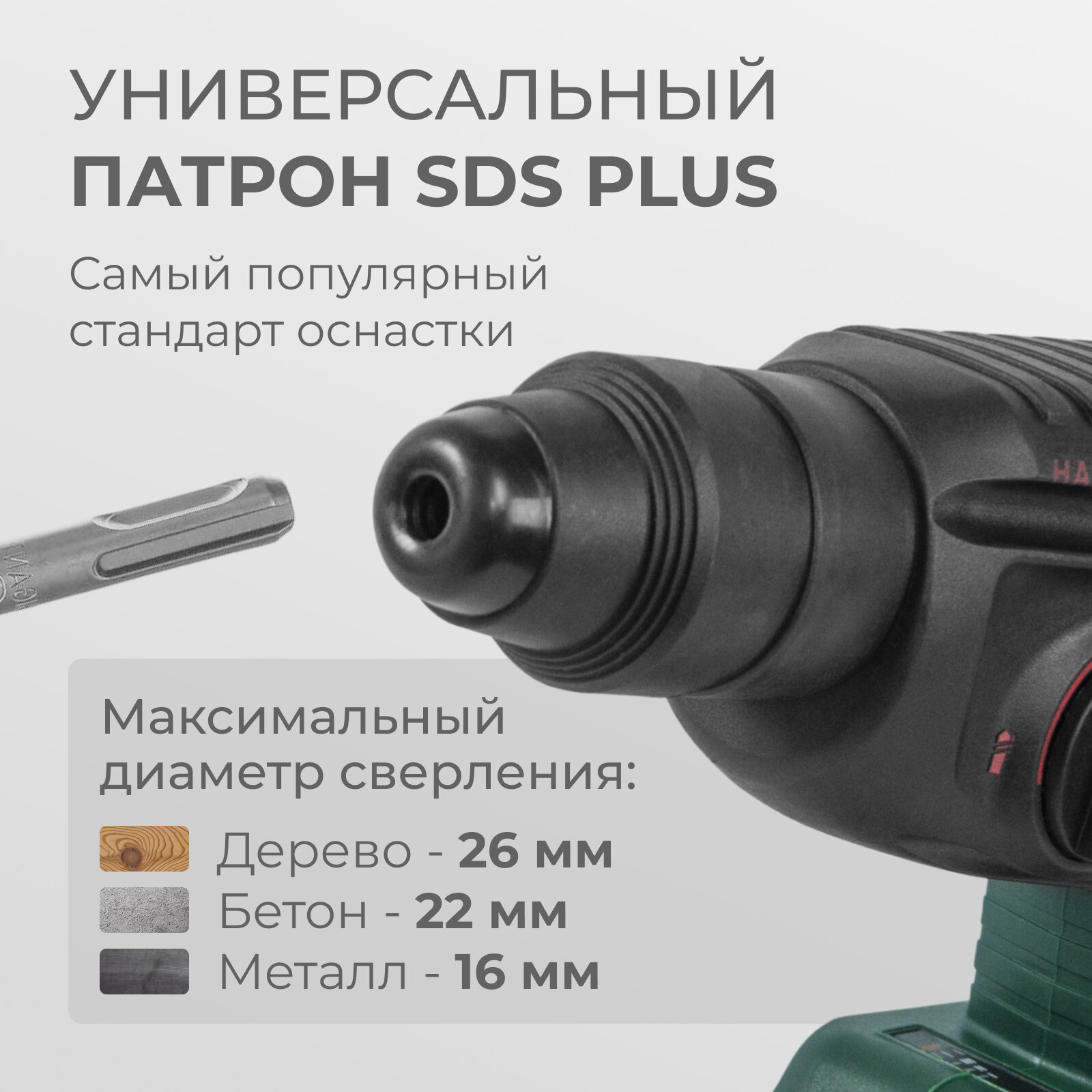 Перфоратор аккумуляторный Fanky бесщеточный 1 АКБ в кейсе, профессиональный с режимом долбления, SDS - plus, зеленый информация: