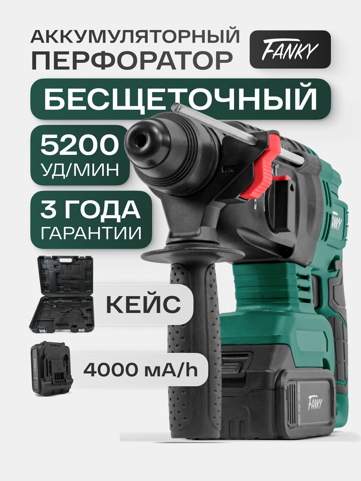 Отзывы на Перфоратор аккумуляторный Fanky бесщеточный 1 АКБ в кейсе, профессиональный с режимом долбления, SDS - plus, зеленый