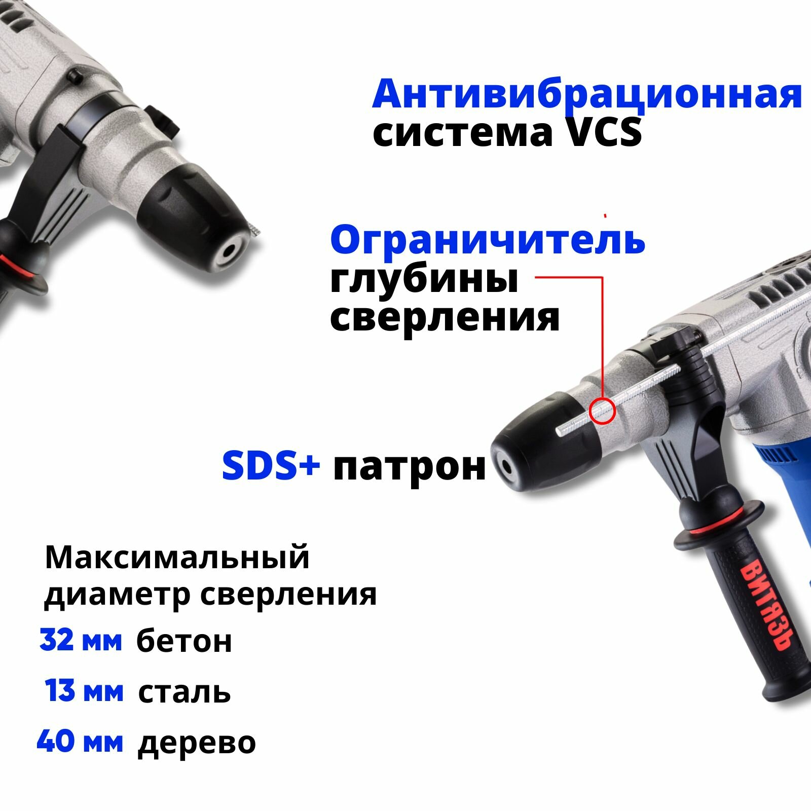 Отзывы на Перфоратор электрический Витязь ПЭ-1400, 5 Дж, SDS +(Бур 4шт, Пика, Зубило, Пылезащитный колпачок, Кейс)