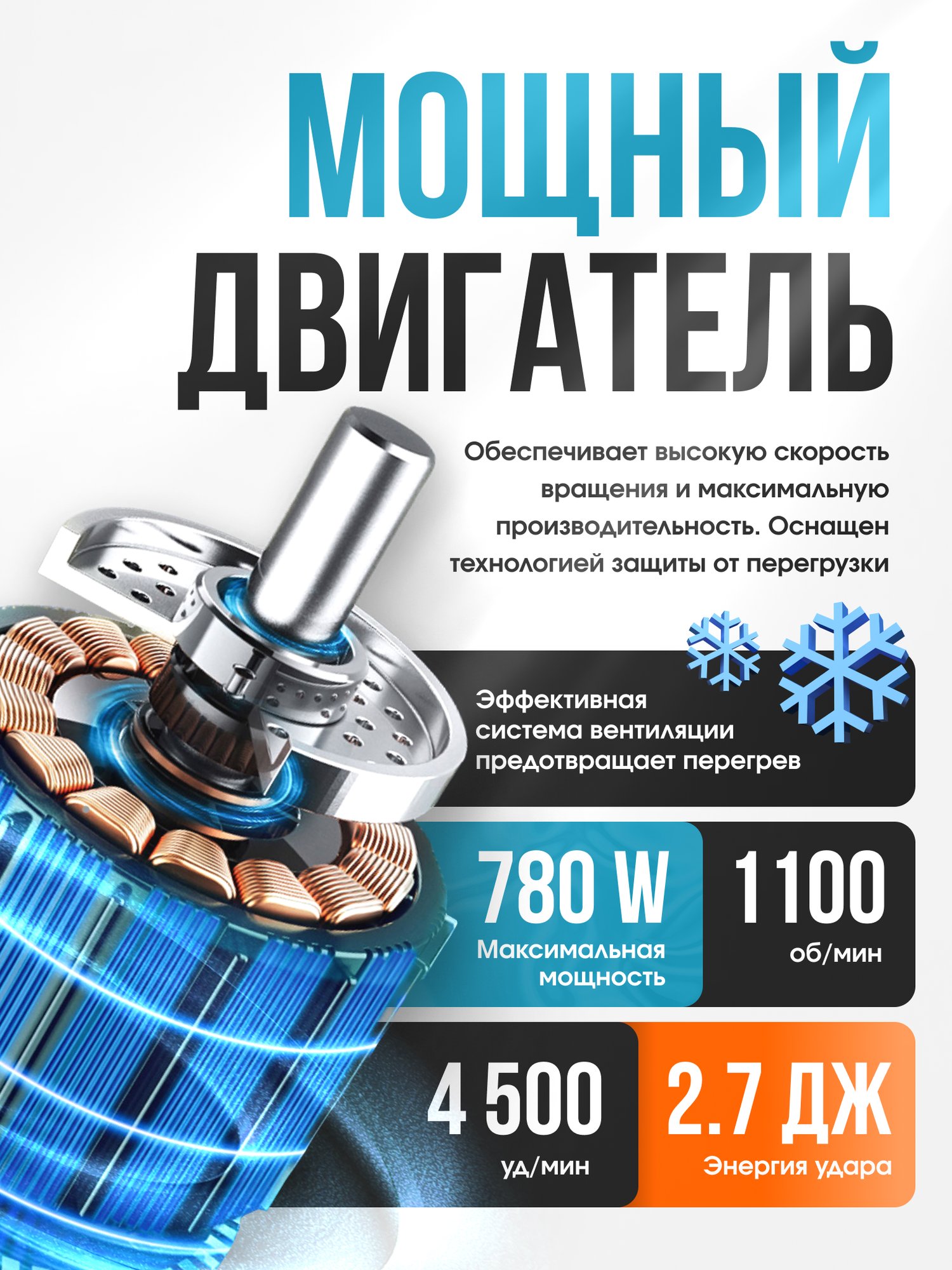 Перфоратор электрический ударный 780 Вт, 1100 об/мин, 4500 уд/мин, сетевой информация: