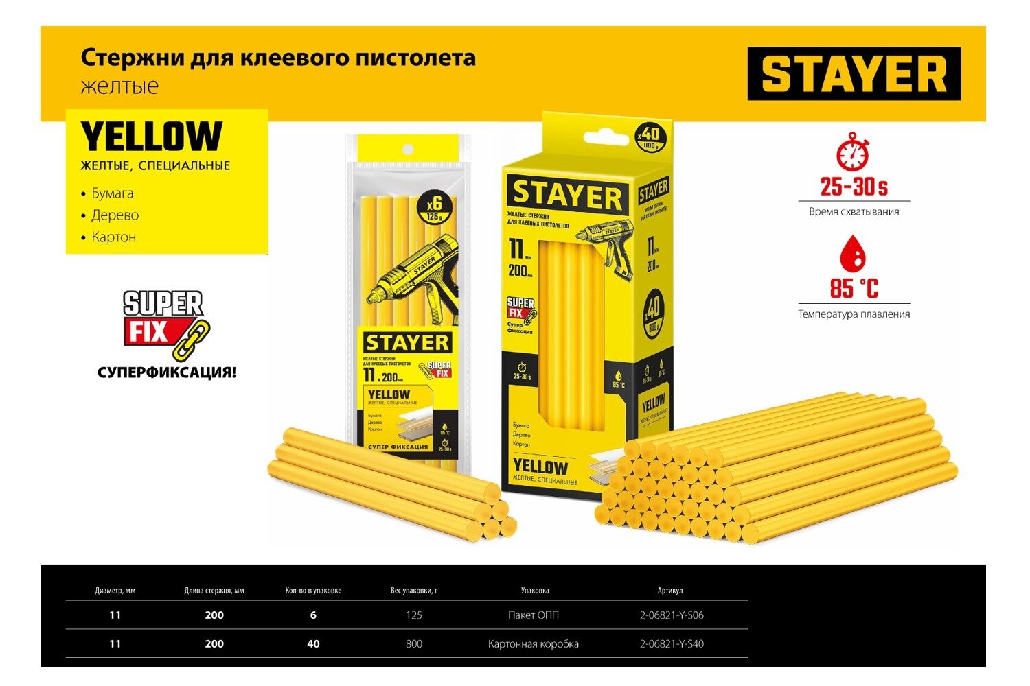 STAYER 6 шт, 11 х 200 мм, стержни клеевые для термоклеевых пистолетов информация: