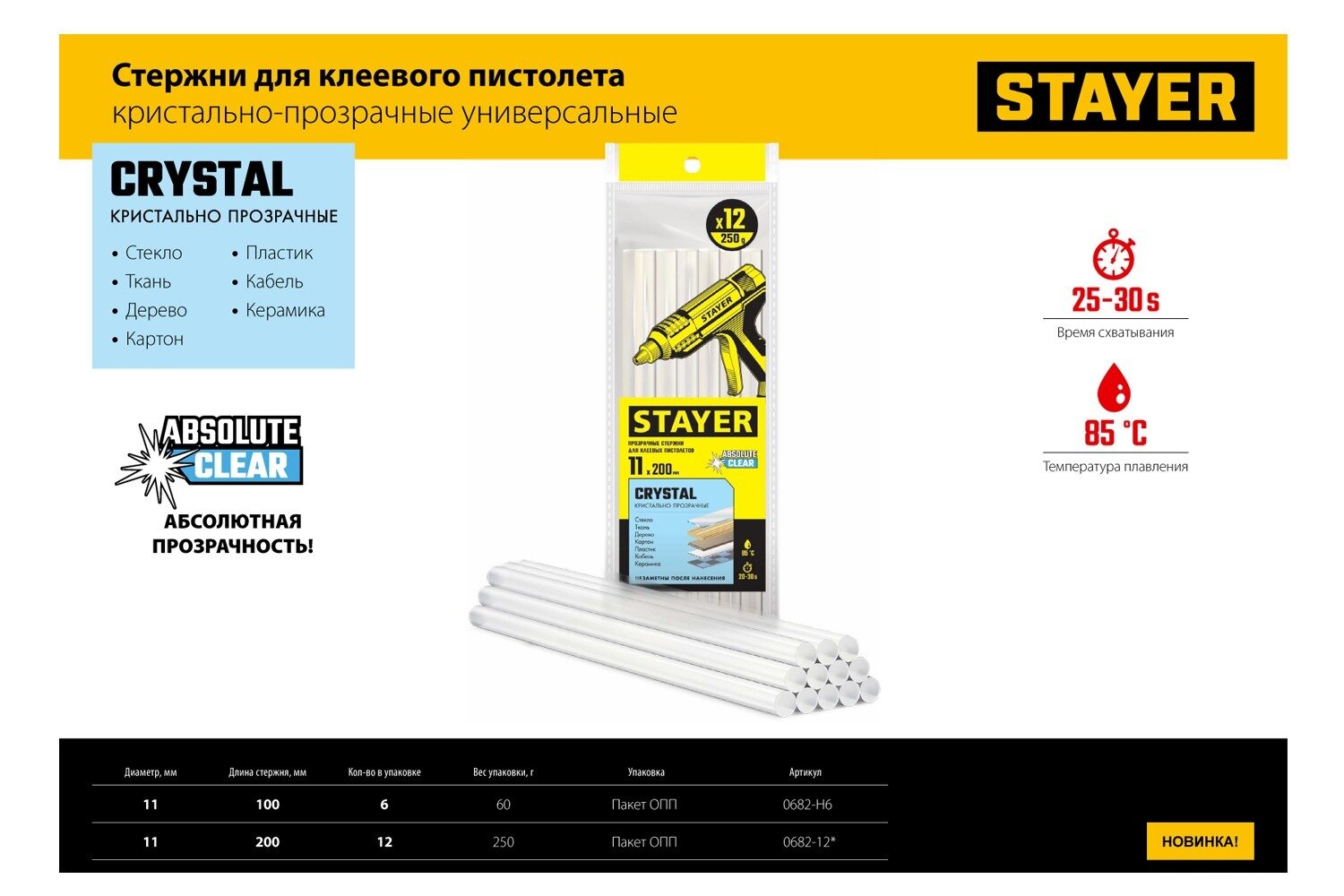 STAYER 6 шт, 11 х 100 мм, стержни клеевые для термоклеевых пистолетов информация: