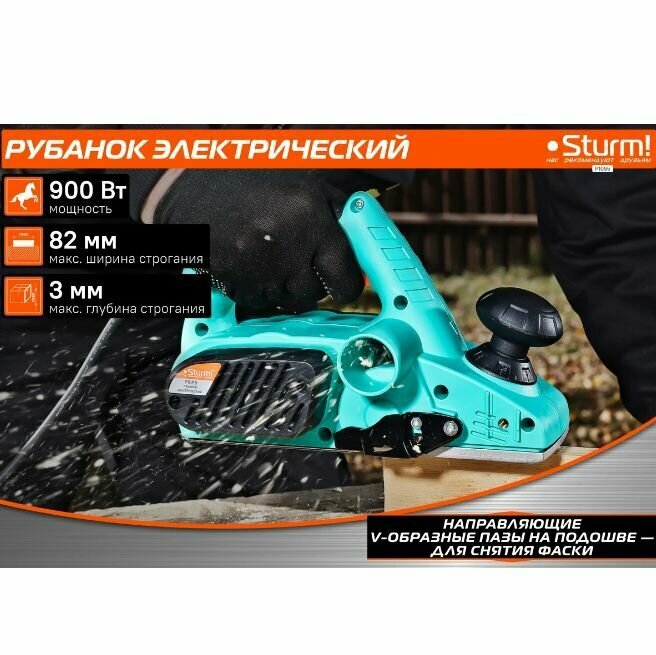 Рубанок Sturm! P1095 (900Вт, 82мм, глубина 3мм, выборка паза -15.5мм, кабель 4м) информация: