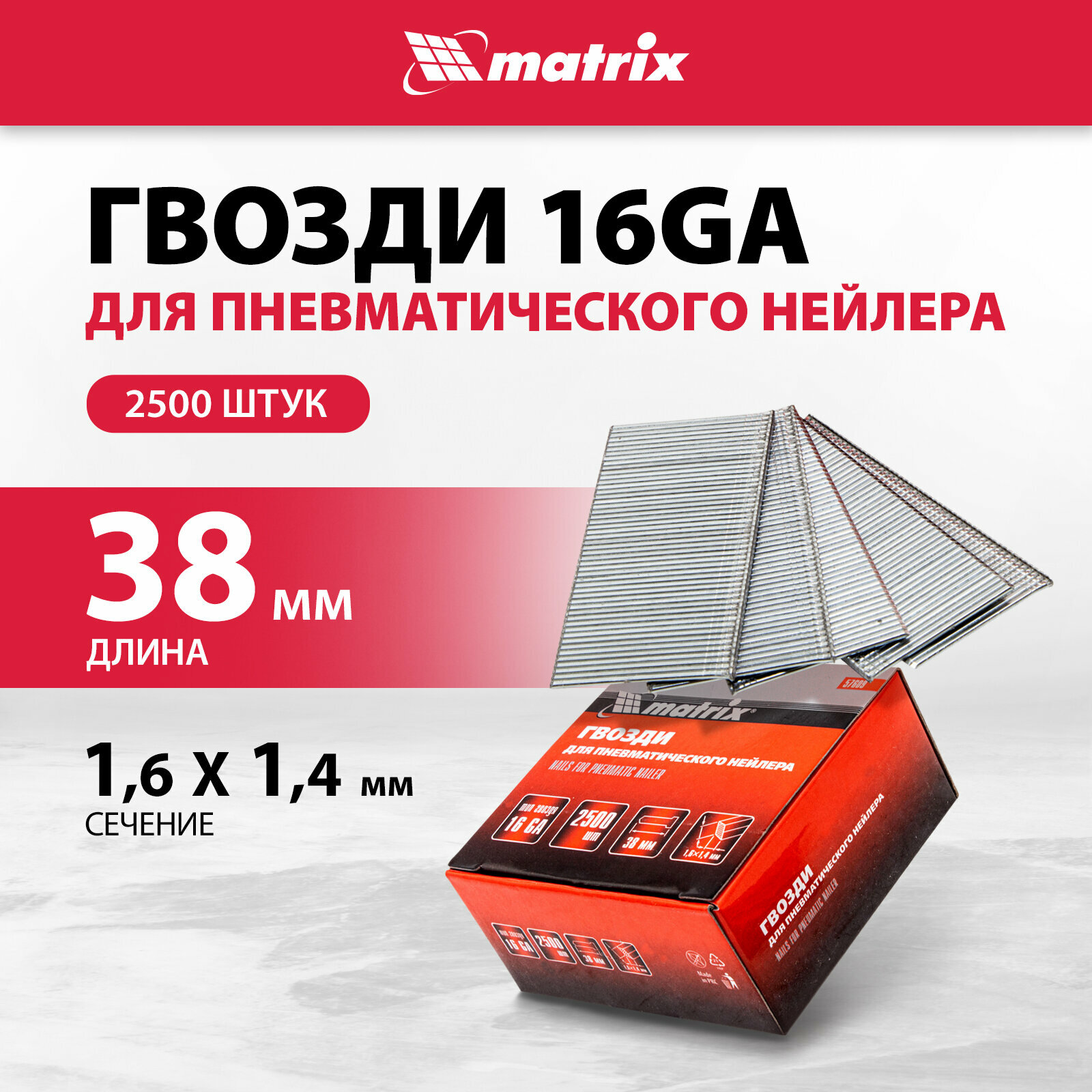 Гвозди Matrix 16GA для пневм. нейлера сечение 1,6х1, 4, длина 38 мм, 2500 шт 57609 информация: