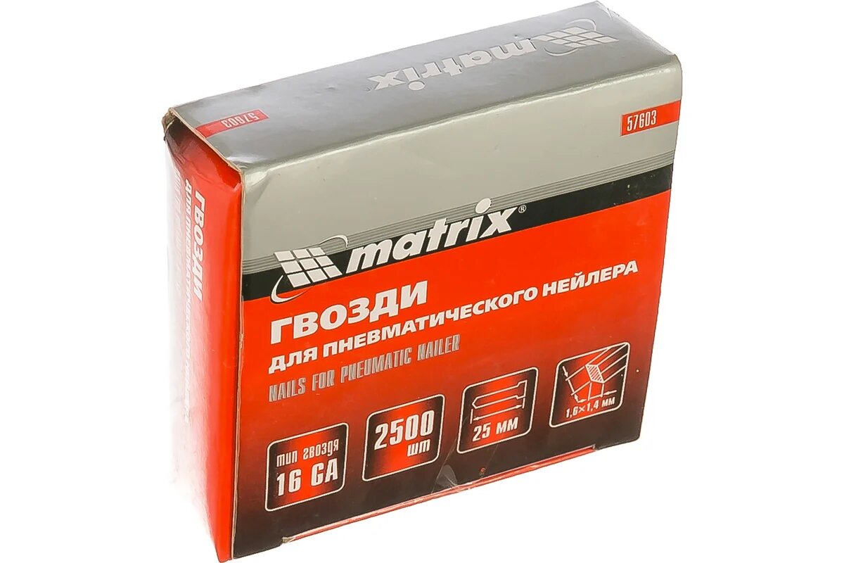 10 цен на Гвозди Matrix 16GA для пневм. нейлера сечение 1,6х1, 4, длина 25 мм, 2500 шт 57603