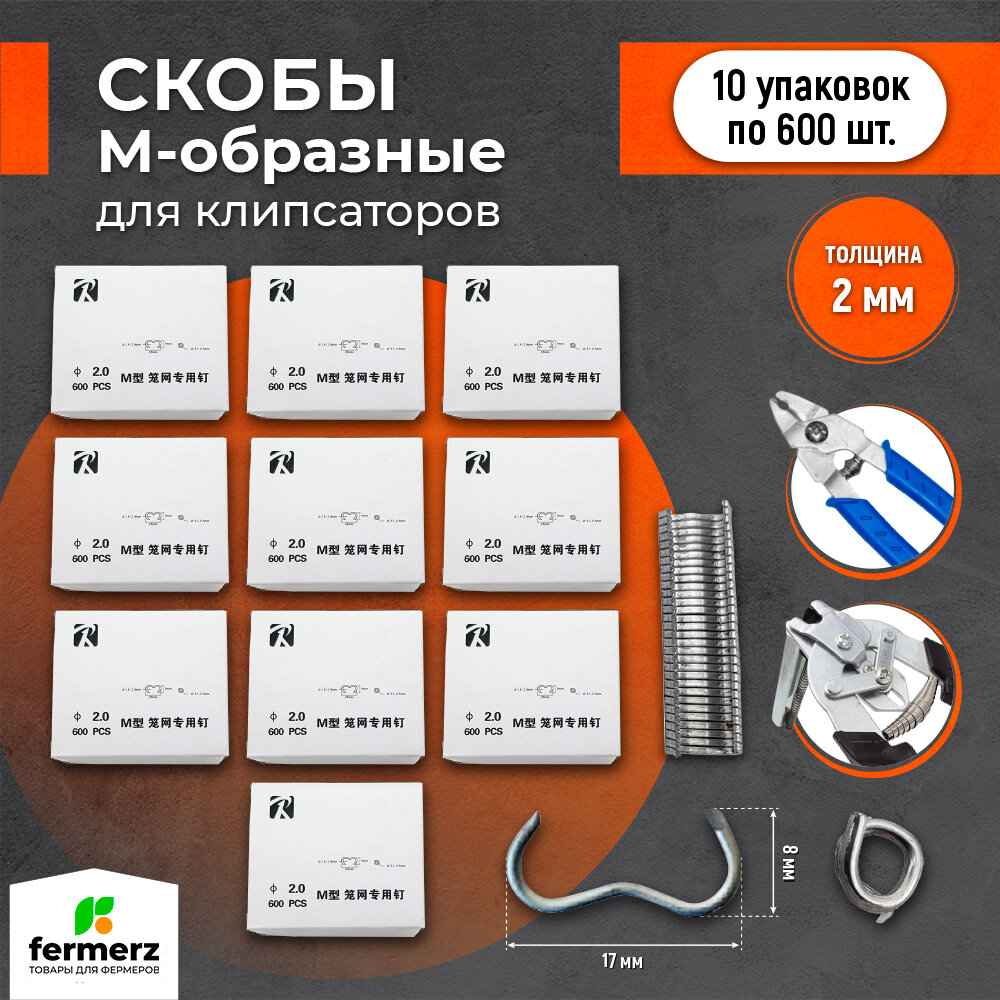 Скобы для клипсатора для скрепления сетки, колбас, ремонта забора 600 шт в упаковке. 2мм. 390 ₽