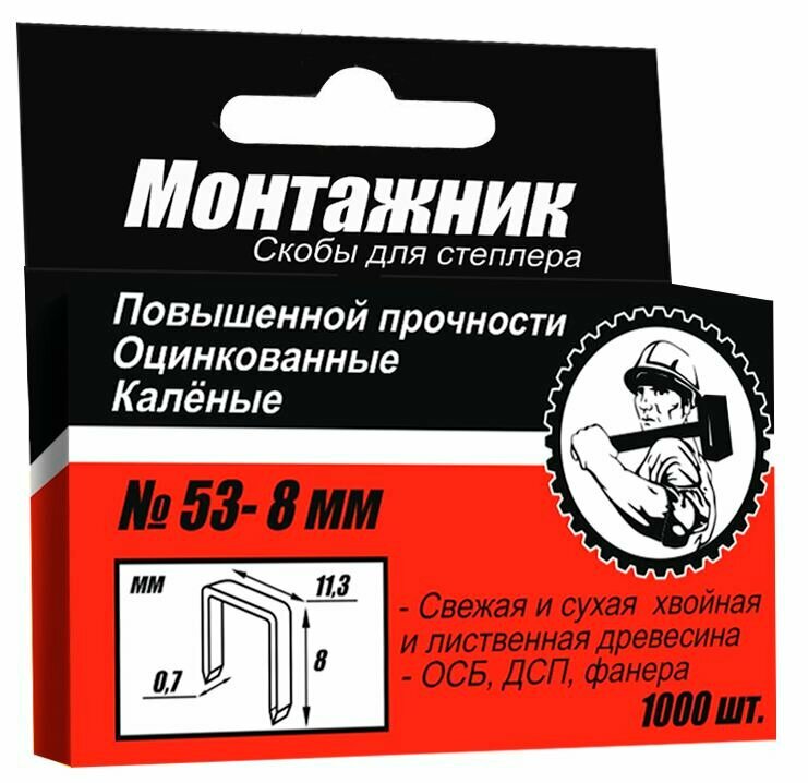 Отзывы на Скобы для степлера: Монтажник 8мм, тип 53, каленые 1000шт (655002)