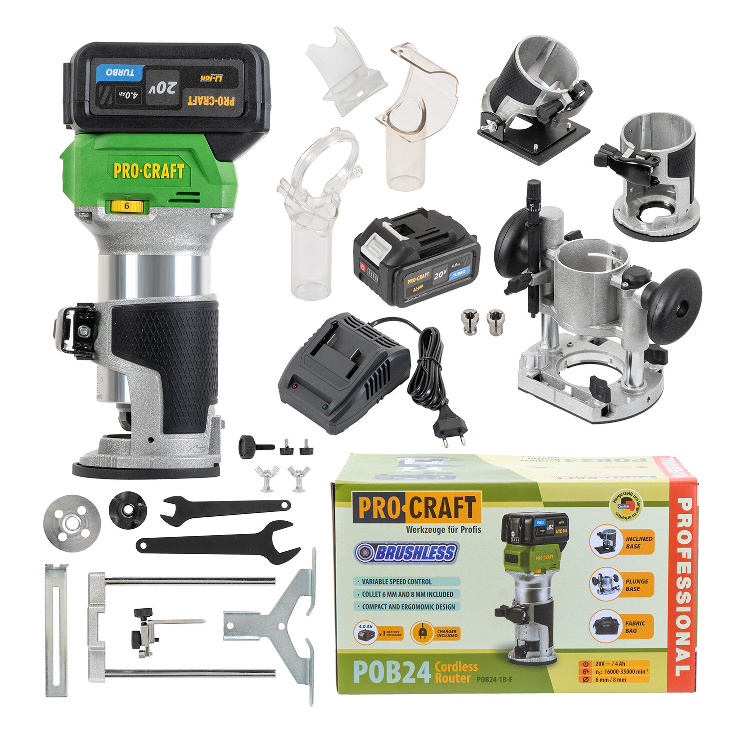 Фрезер аккумуляторный Pro-Craft Professional POB24 с аксессуарами 3в1. подсветка информация: