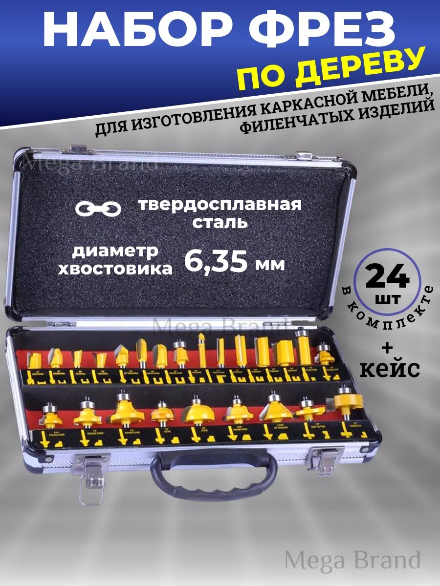 Набор фрез по дереву диаметр хвостика 6.35 информация: