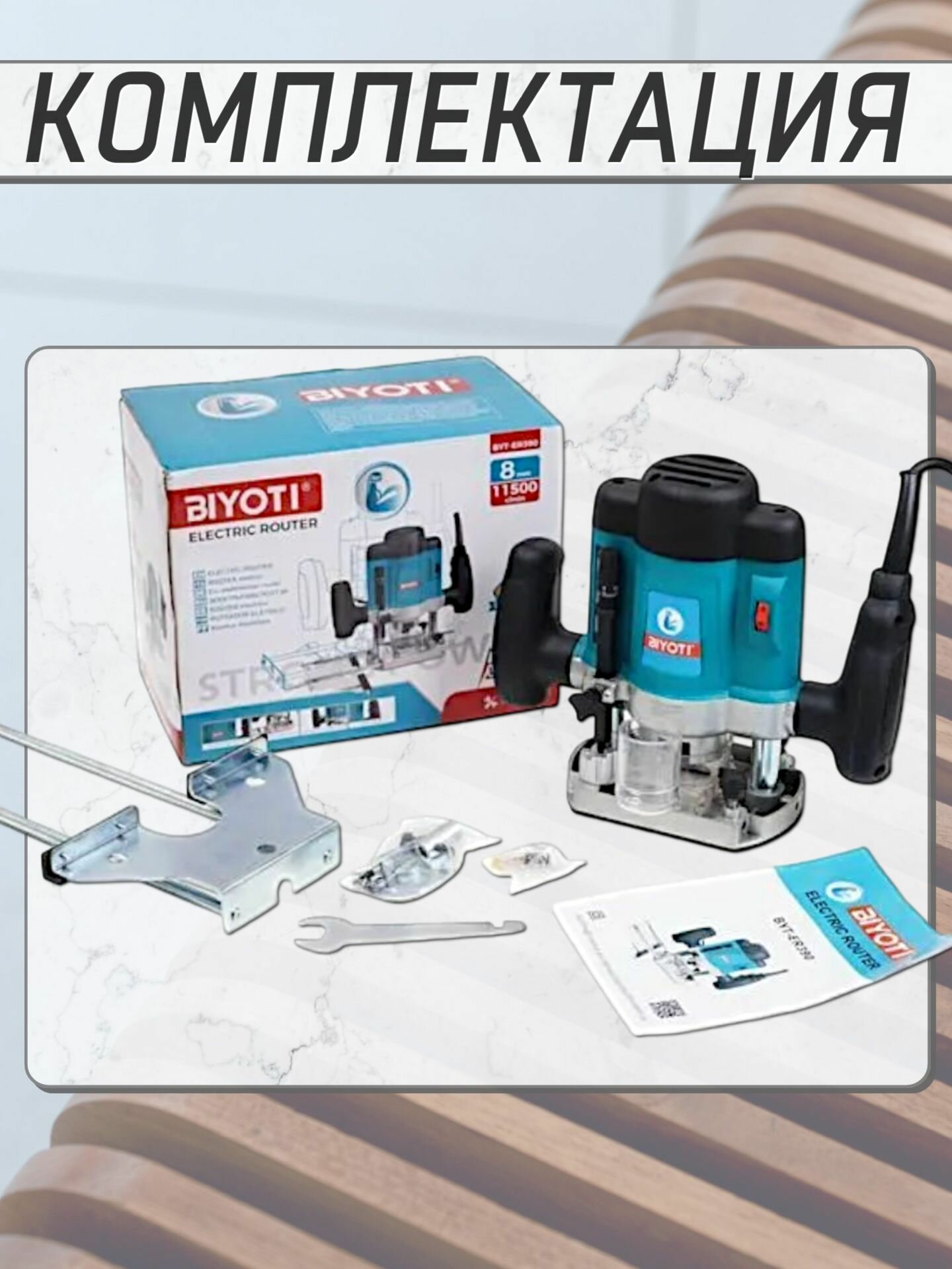Фрезер BIYOTI BYT-ER390, мощность 1200Вт, зажимная оснастка 8 мм, частота вращения 34000 об/мин, информация: