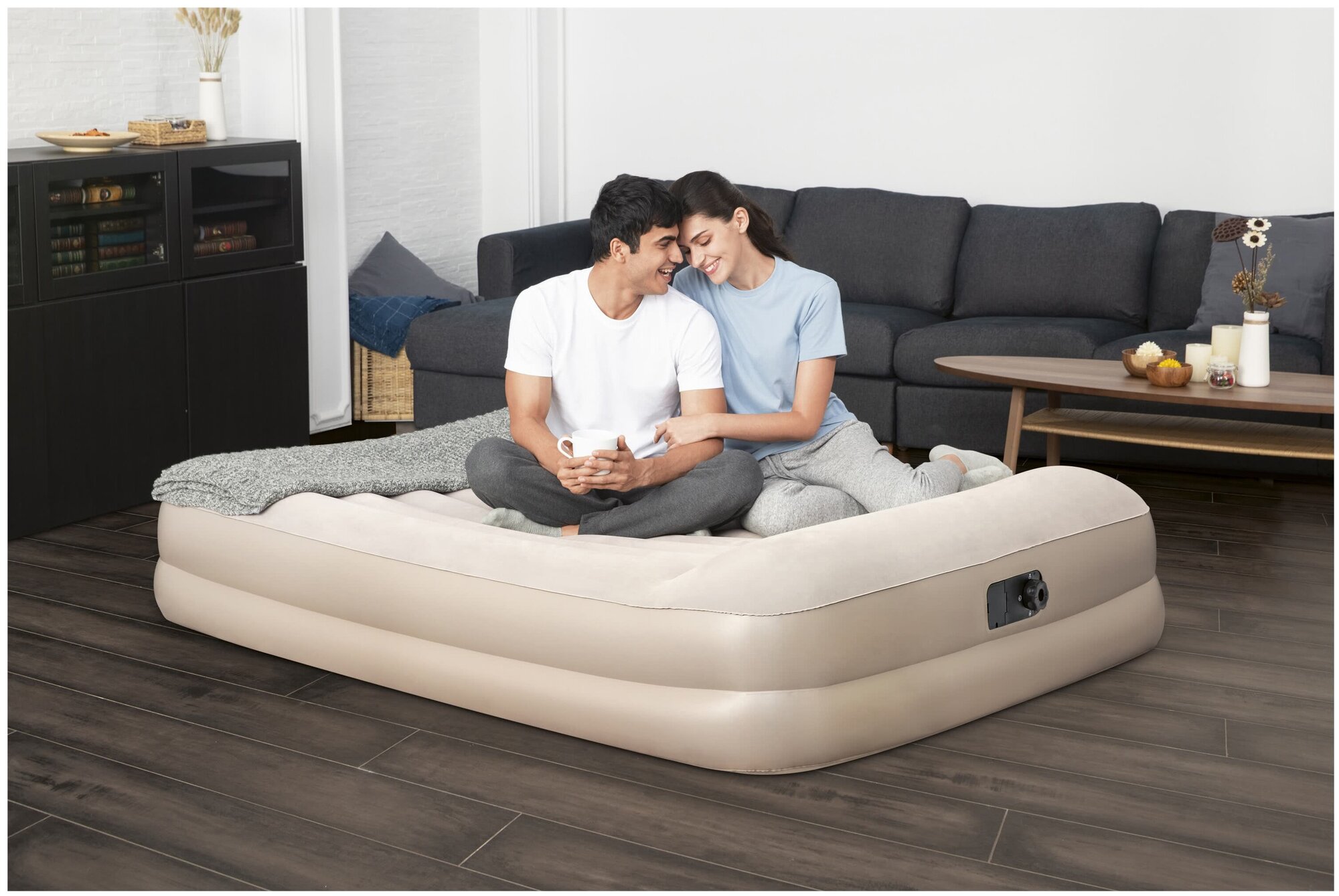 67696 Двухспальная надувная кровать 203х152х42см + встроенный насос