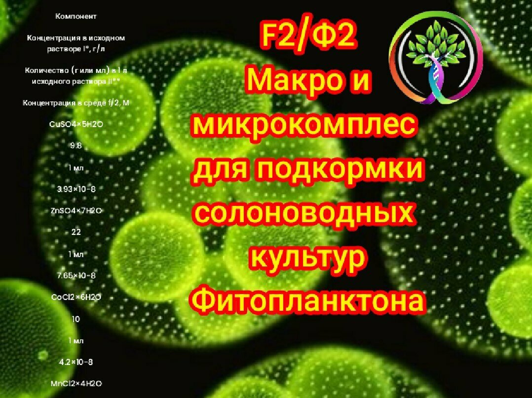 Fо2/Ф2 питательная среда вродорослей/Фитопланктона: Тетраселмис, Нанохлоропсис, Синехококкус, Далиниелла солина. информация: