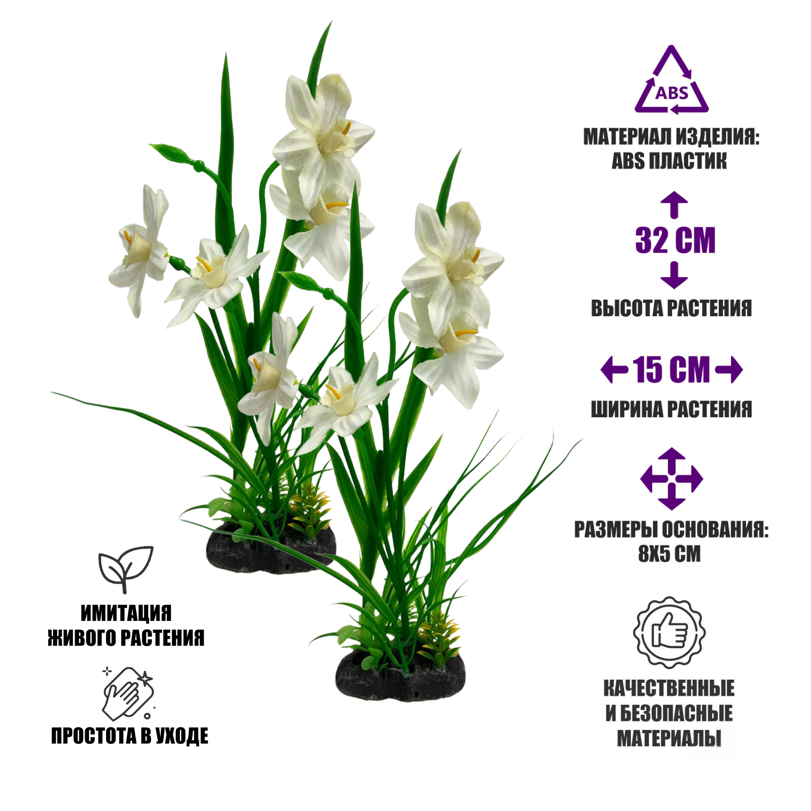 Растение искусственное, декор для аквариума, Нарцисс, 2 шт информация: