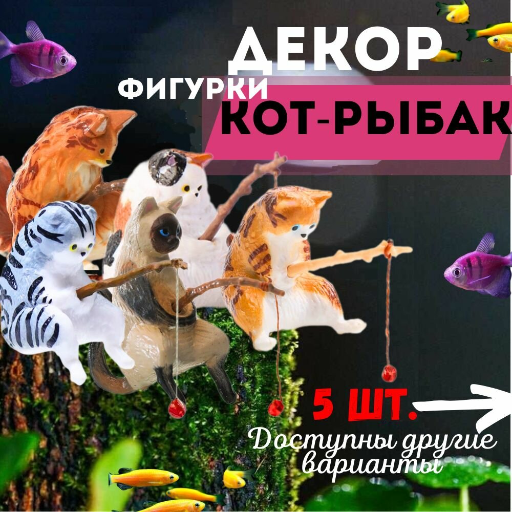 10 цен на Котик с удочкой/Кот рыбак для аквариума. Набор 5 шт.