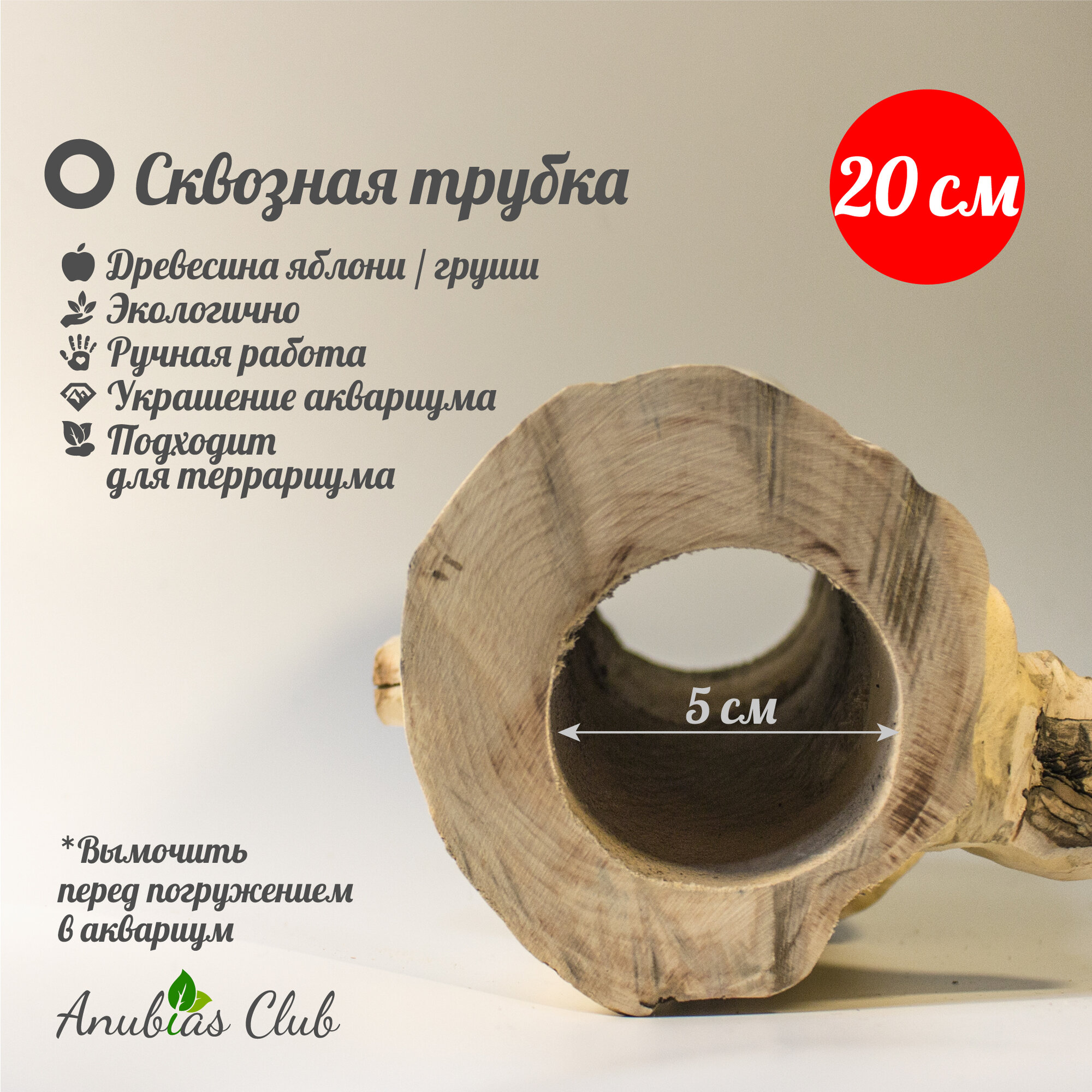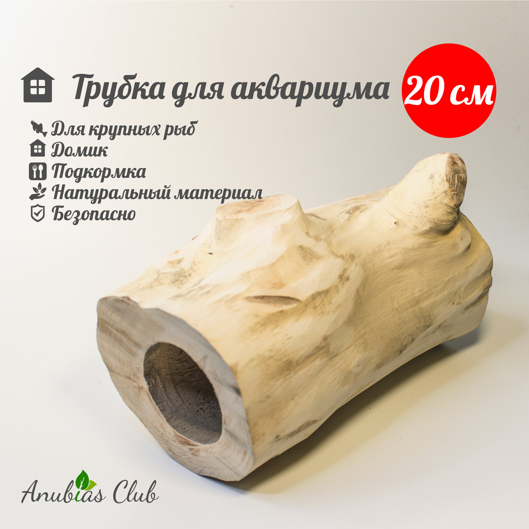 Декор для аквариума XXL грот деревянный трубка для рыб и раков 20 см информация:
