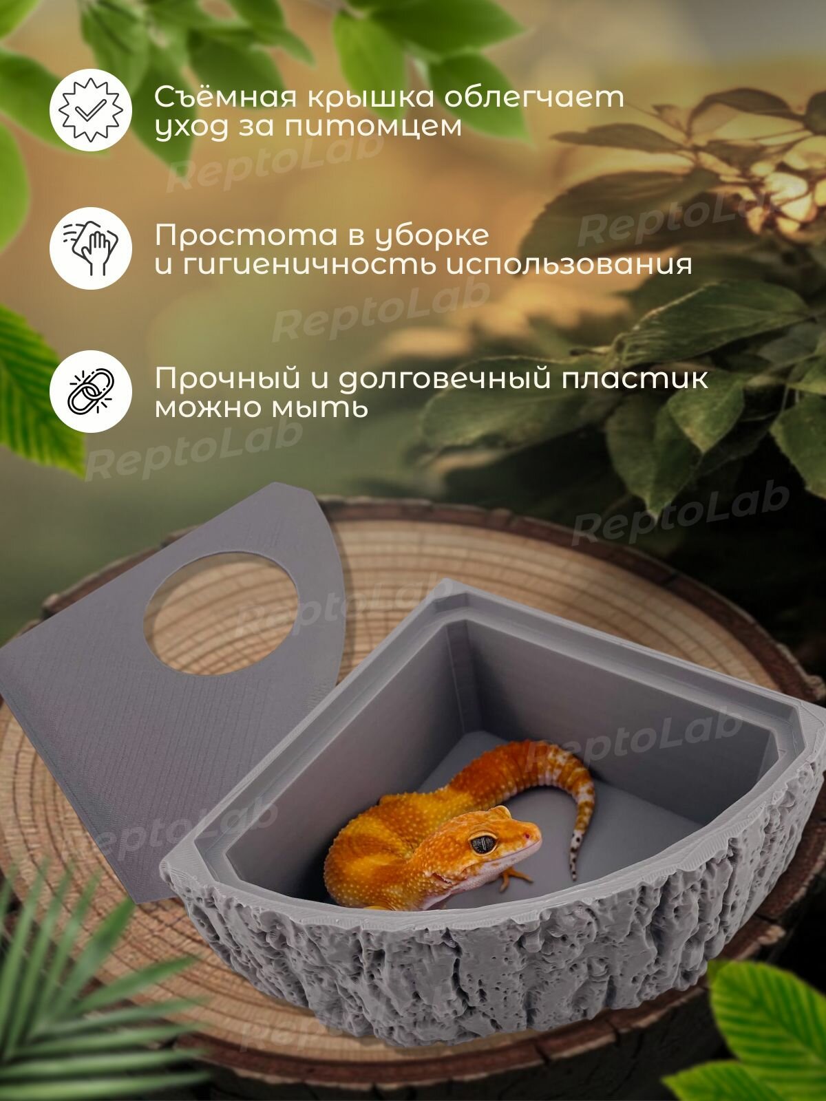 Влажная камера для рептилий угловая . Для Бананоедов, Гекконов, Эублефаров . Цвет : Серый. информация: