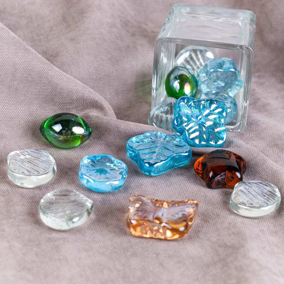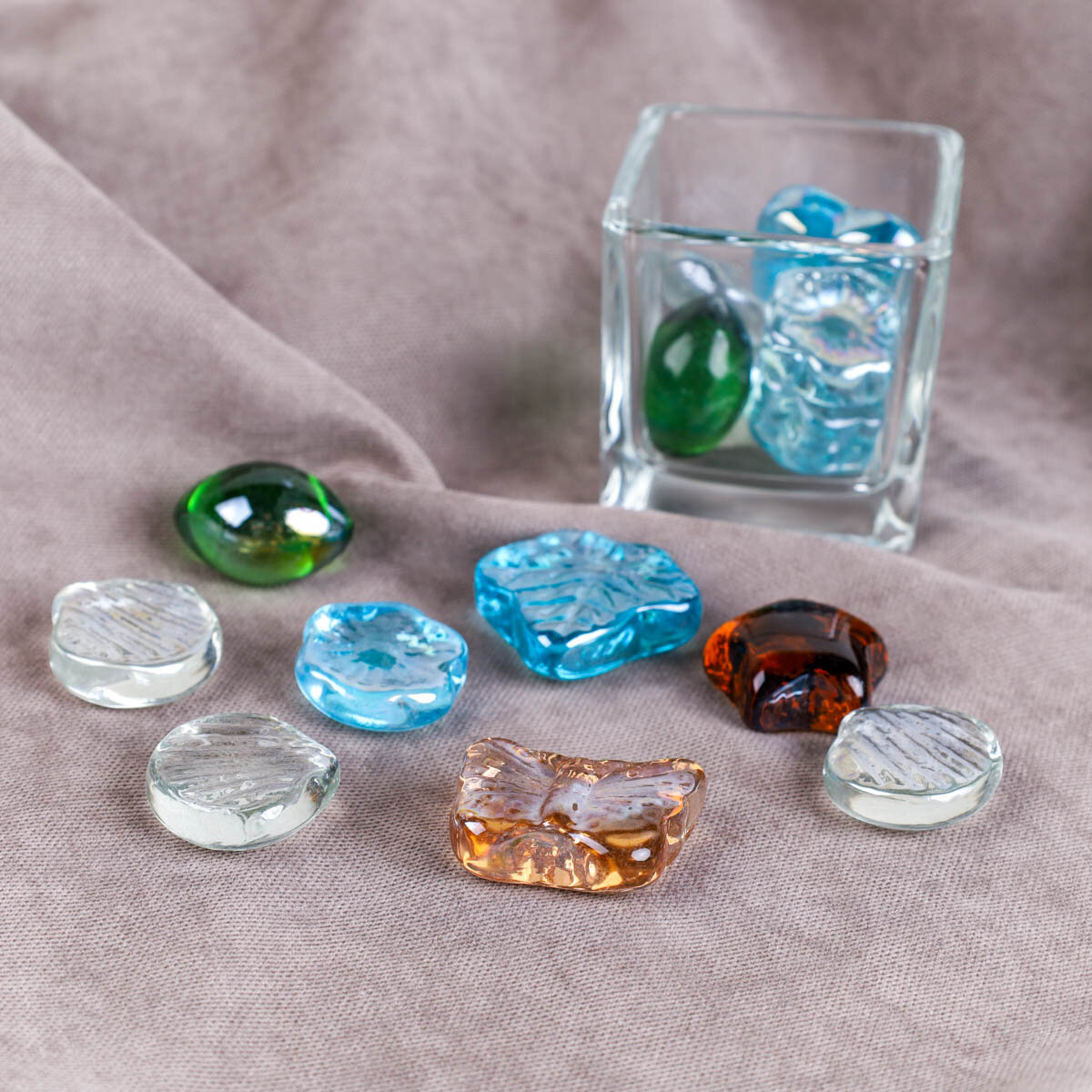 Декоративные разноцветные камни "Фигурные" 250 грамм, стекло, для украшения цветочного горшка и аквариума информация:
