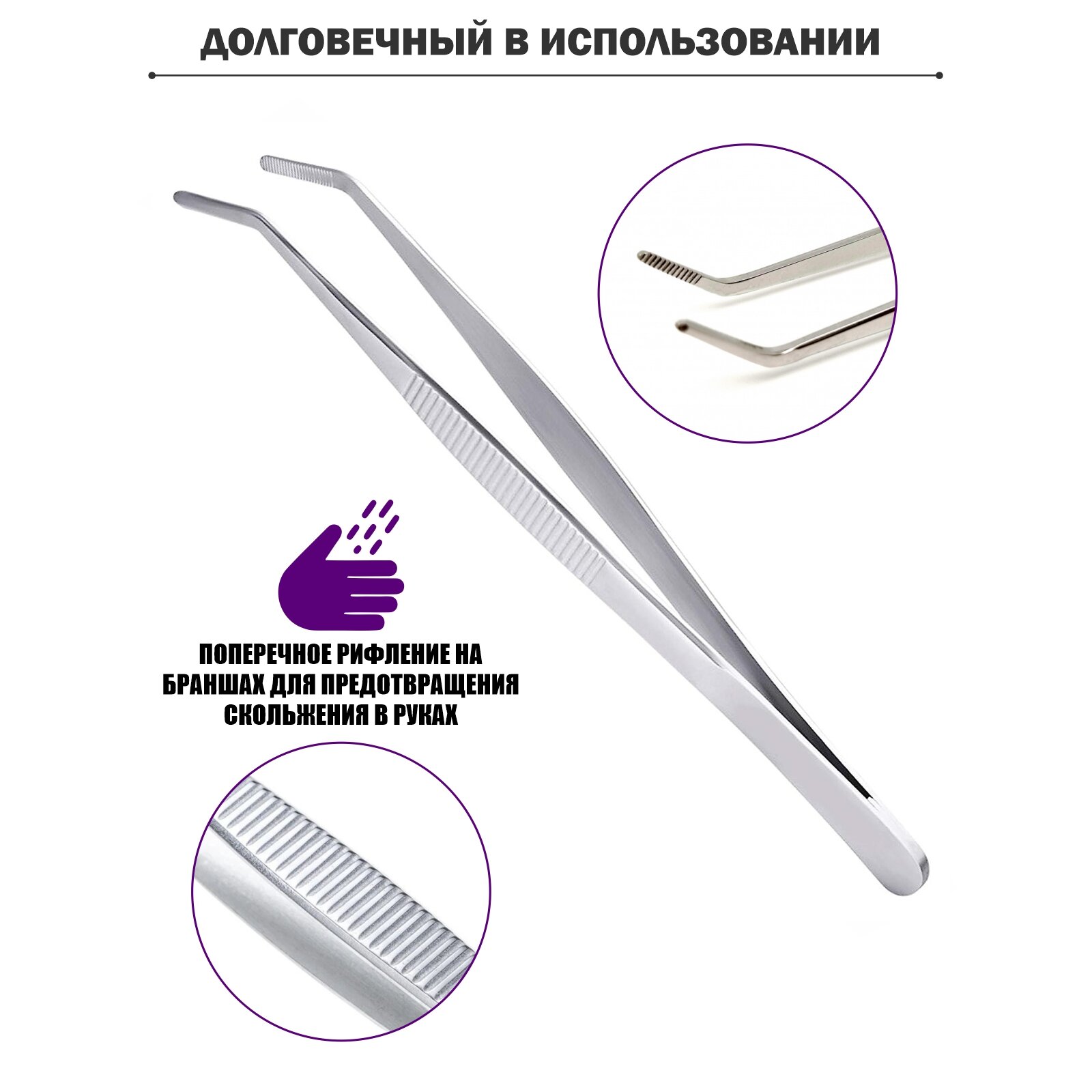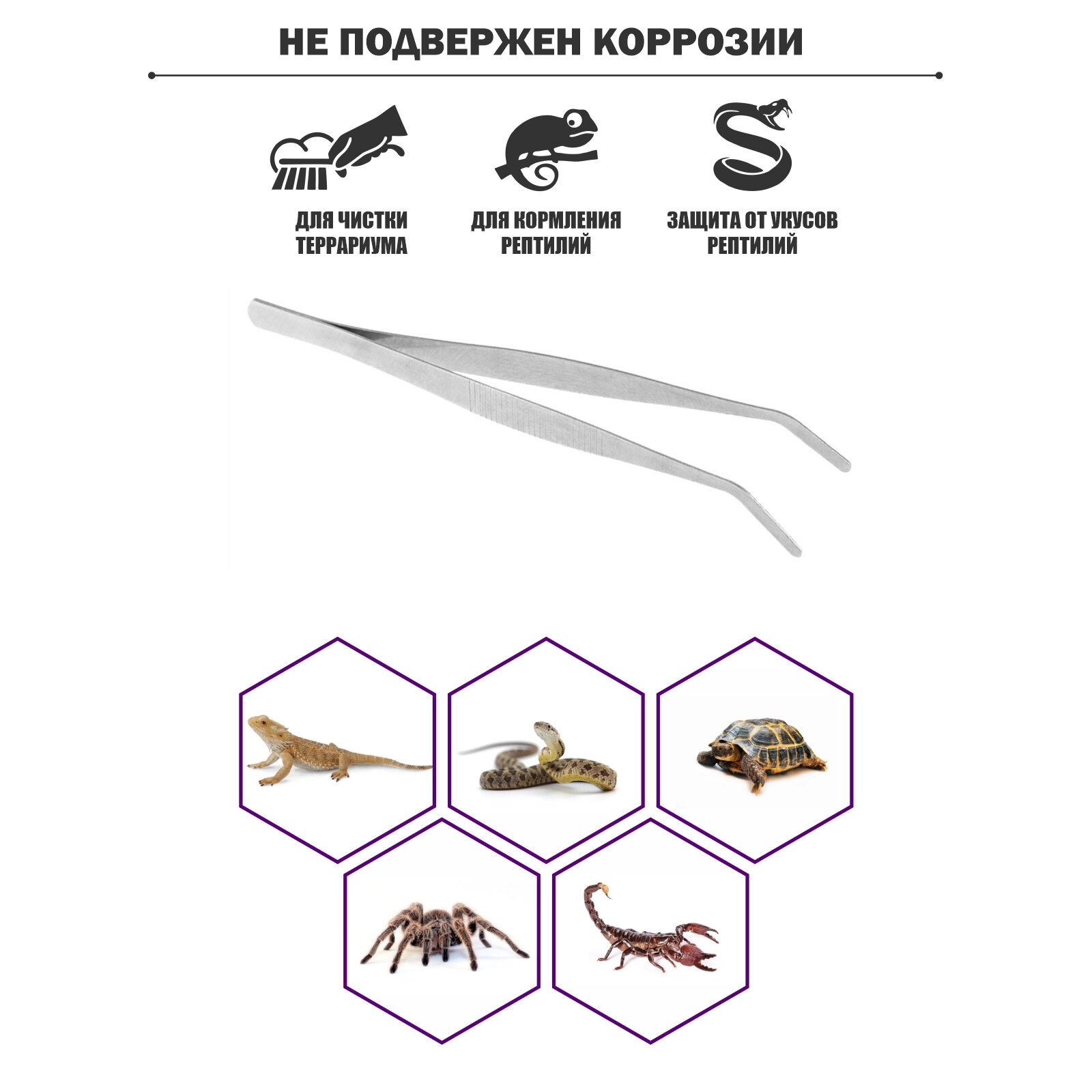 Изогнутый пинцет из нержавеющей стали для террариума, аквариума, кормления грызунов (20 см)