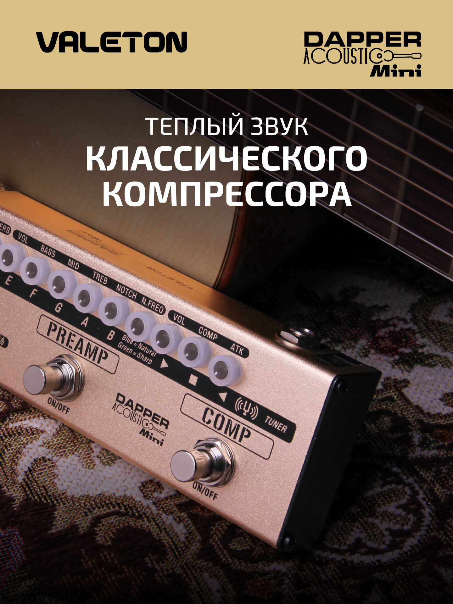 Характиристики этого товара не найдены!Отзывы на Напольная компактная гитарная педаль Dapper Acoustic Mini Valeton MES-4, для акустической гитары, тюнер