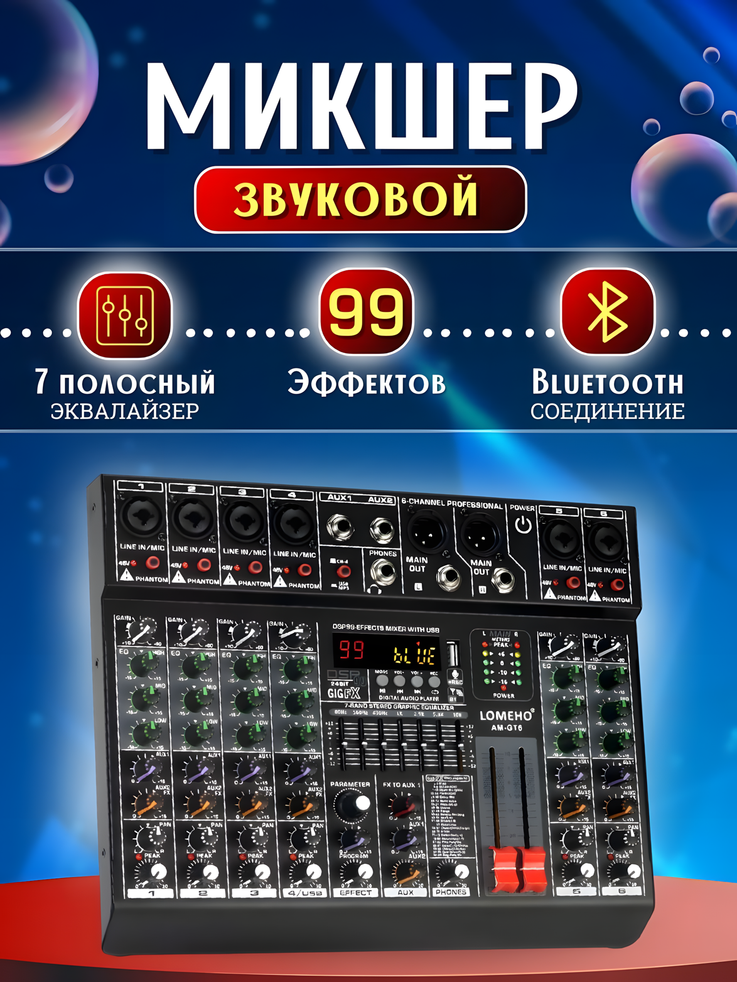 10 цен на Микшерный пульт звуковой 7 каналов, DSP