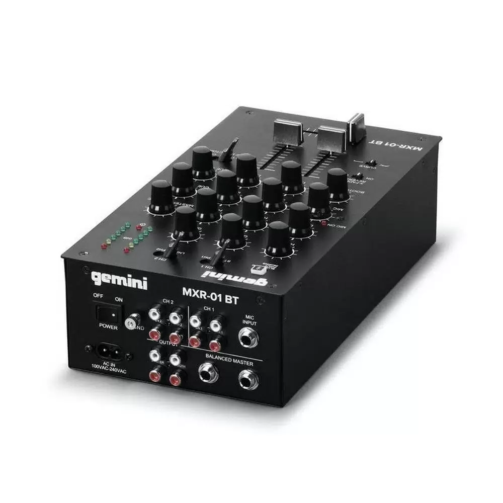 10 цен на DJ Микшер Gemini MXR-01BT с Bluetooth; 4xRCA phono/линейные входа; 1/4" микрофонный вход, 1/4" выход на наушники