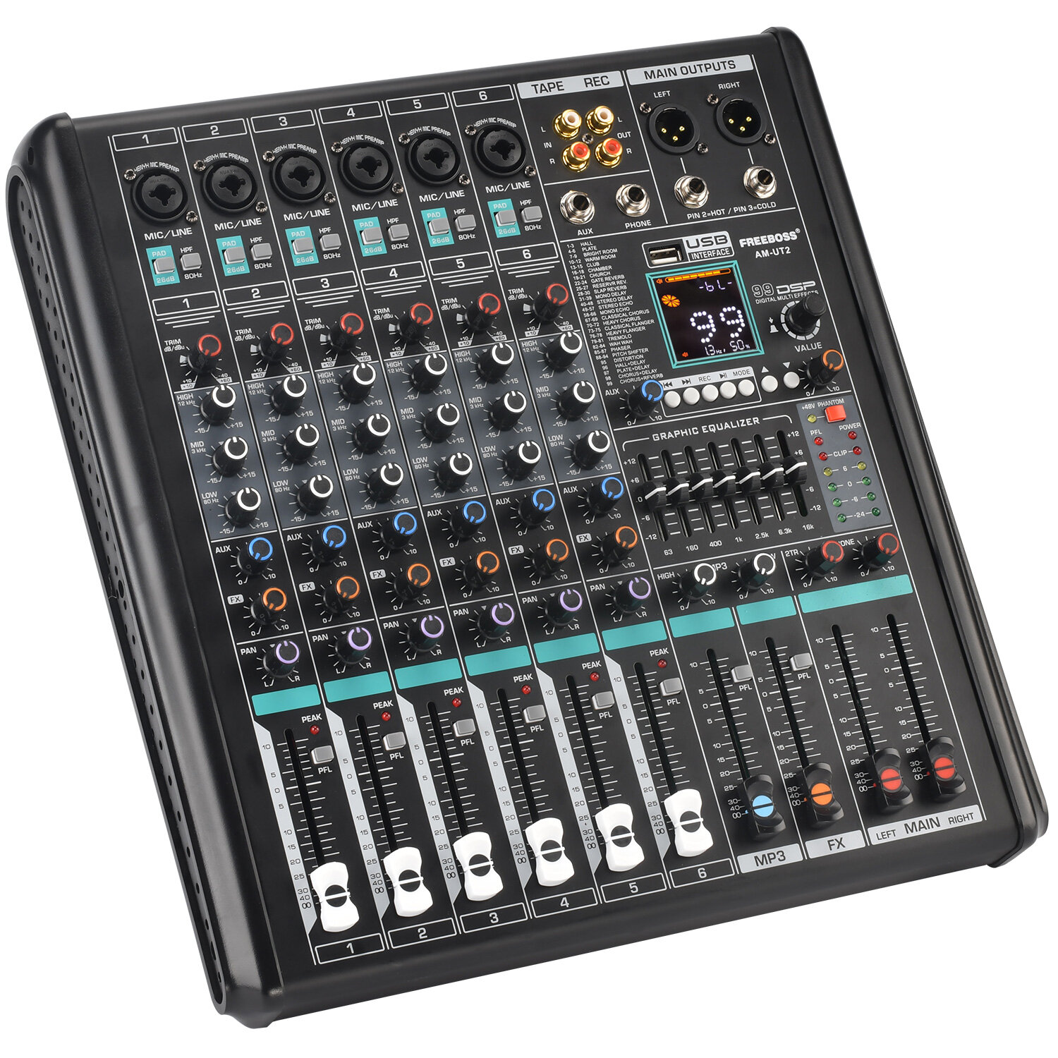 10 цен на Bluetooth аудио микшер 6-канальная звуковая станция USB 99 DSP эффект 48 В фантомное питание PFL микшерный пульт AM-UT2