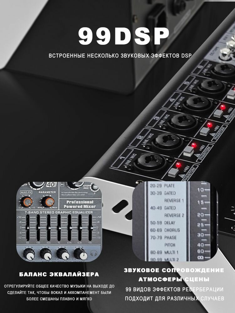 Профессиональный четырех-/шестиканальный микшер BORGE Nx4p Nx6p с усилителем мощности 99 DSP и функцией Bluetooth информация: