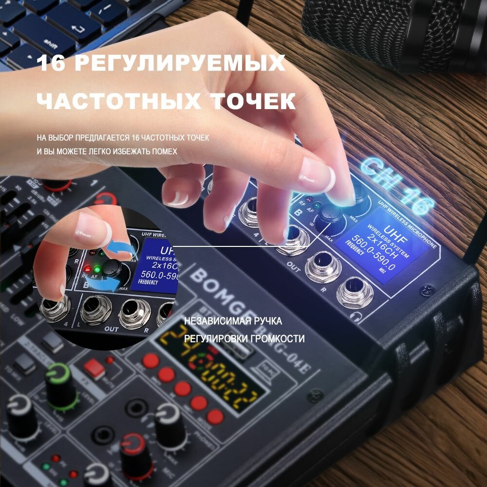 BOMGE BMG-04E икшерный пульт с микрофоном, 4-канальный караоке микшер информация: