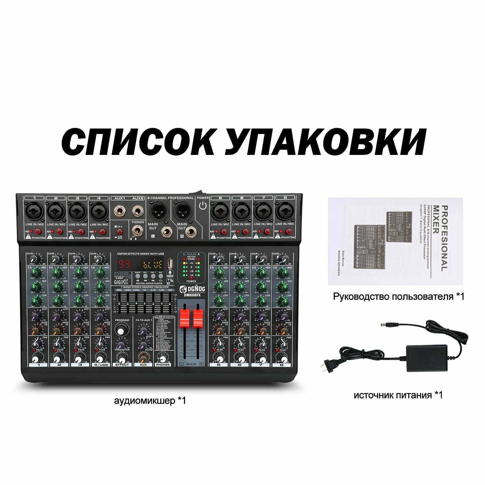 10 цен на DJ-микшер DGNOG DMK08FX, аналоговый, 8-канальный, черный матовый
