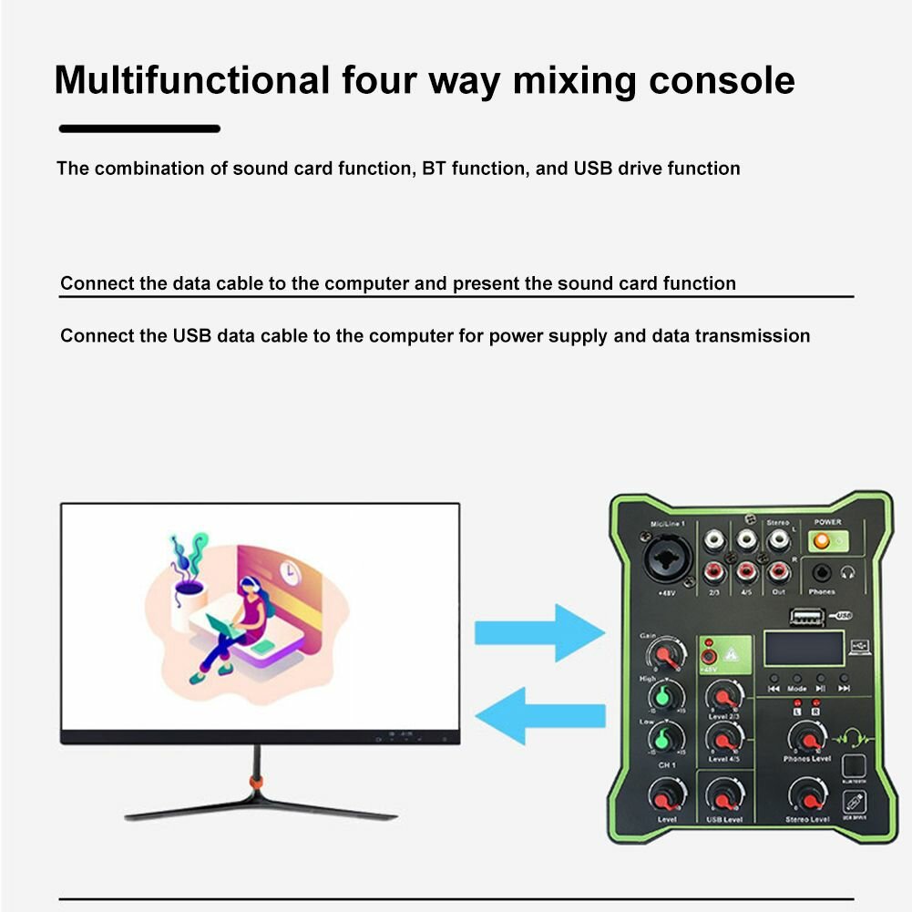 JIY Professional 4-канальный микшерный пульт Мини-USB-микшер со звуковой картой