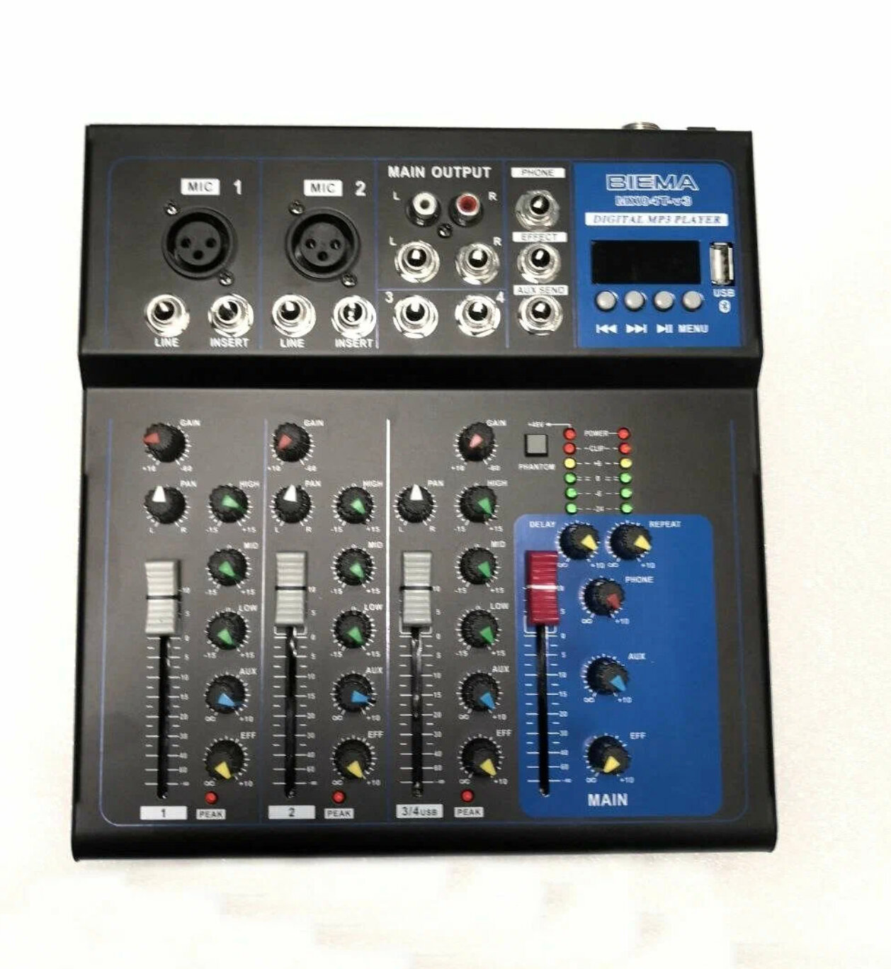JIY Professional 4-канальный микшерный пульт Мини-USB-микшер со звуковой картой