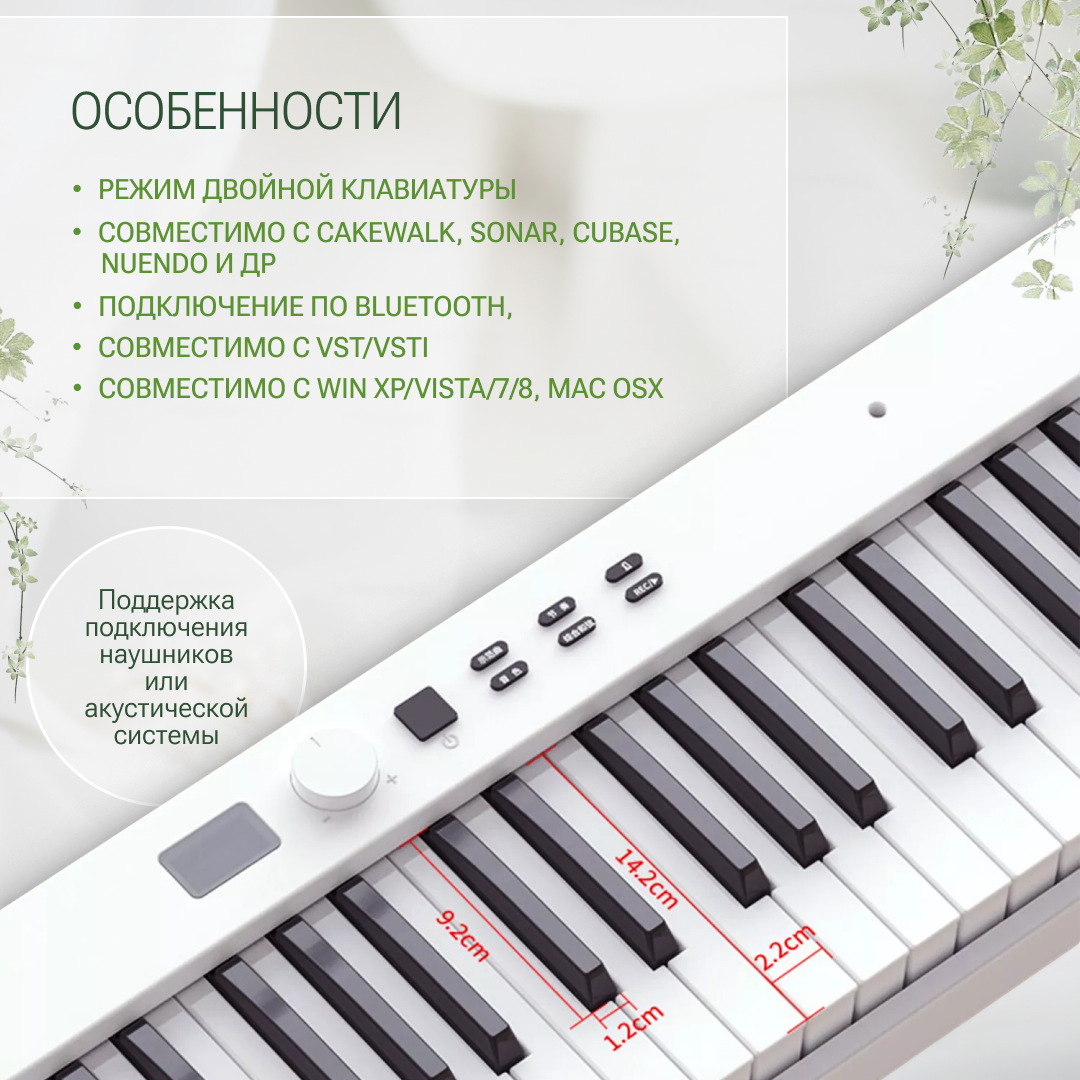 Синтезатор, 88 клавиш, с поддержкой Bluetooth, портативный дизайн