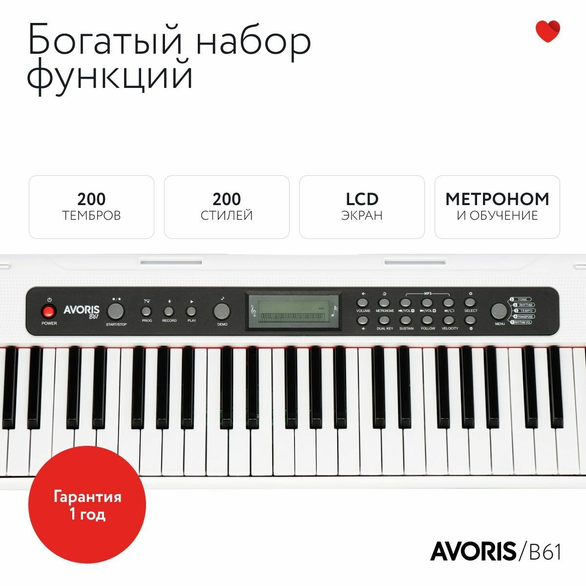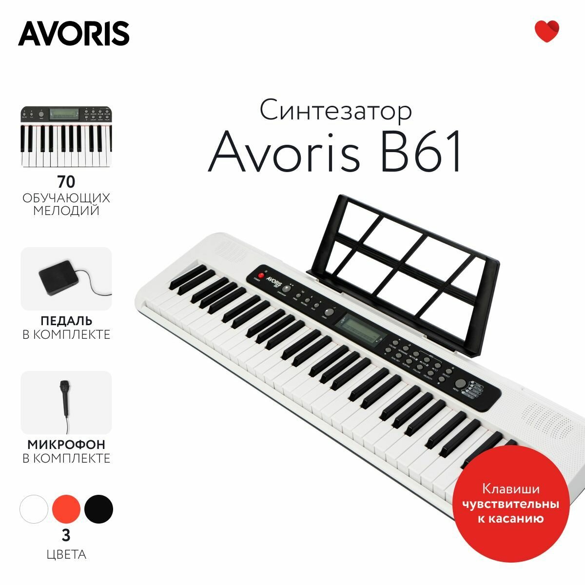 Отзывы на Avoris B61 - синтезатор с функцией обучения, чувствительный к касанию, белый цвет