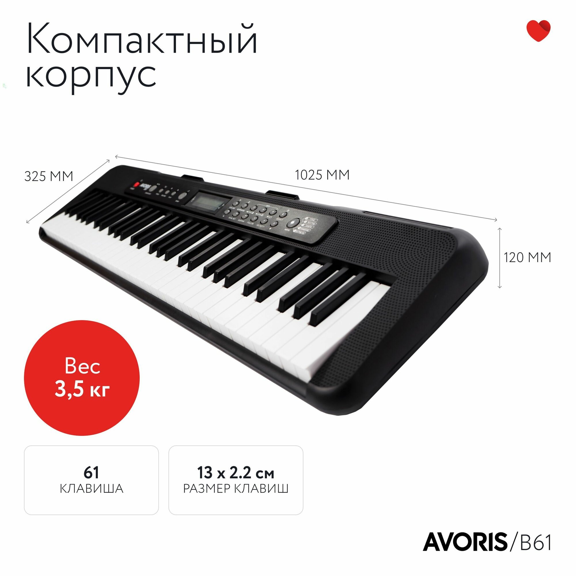 Avoris B61 - синтезатор с функцией обучения, чувствительный к касанию, чёрный цвет информация: