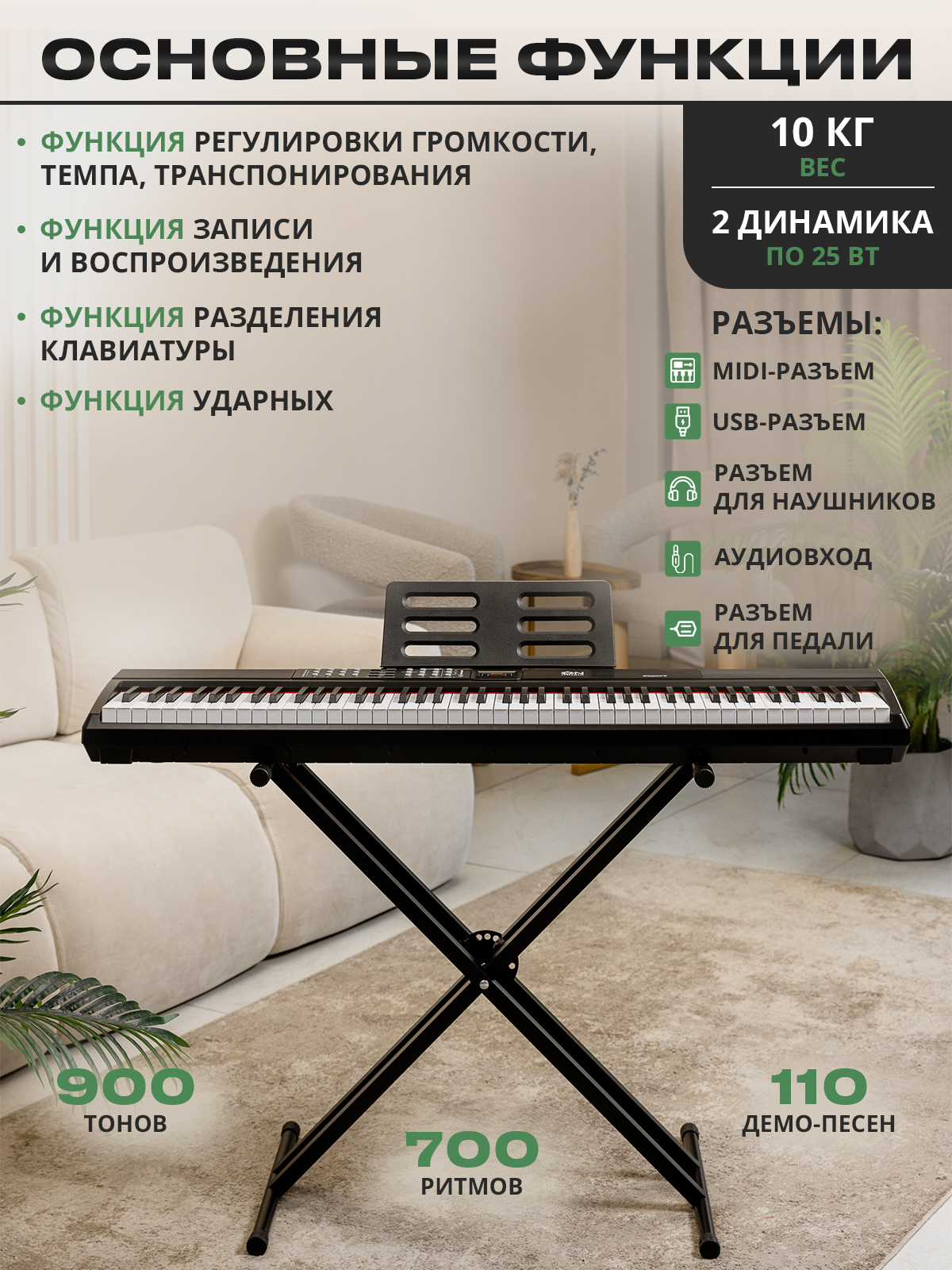 Синтезатор, 88 клавиш, с поддержкой Bluetooth, портативный дизайн