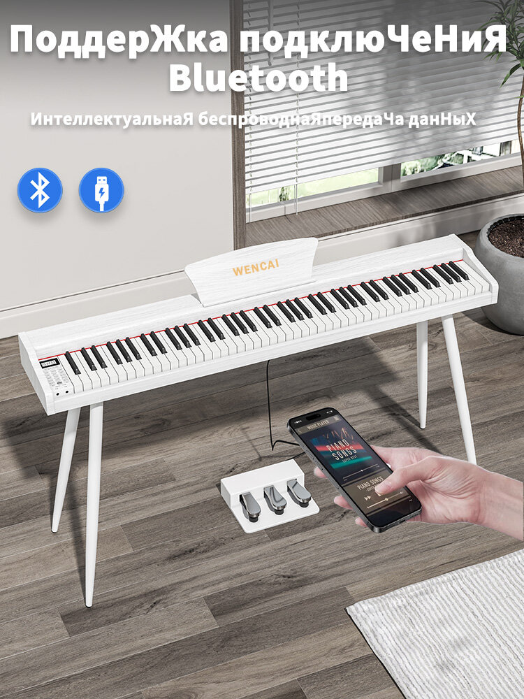 Синтезатор, 88 клавиш, с поддержкой Bluetooth, портативный дизайн
