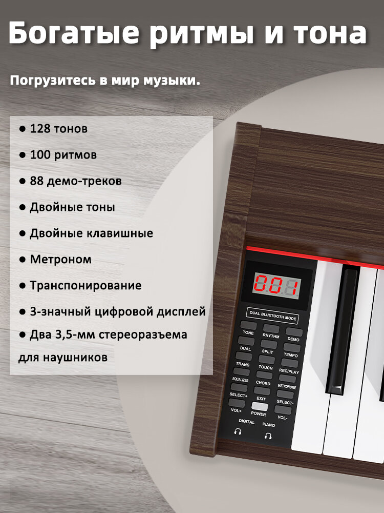 Цифровое пианино Bluetooth на четырех ножках, с 88 клавишами, коричневый информация: