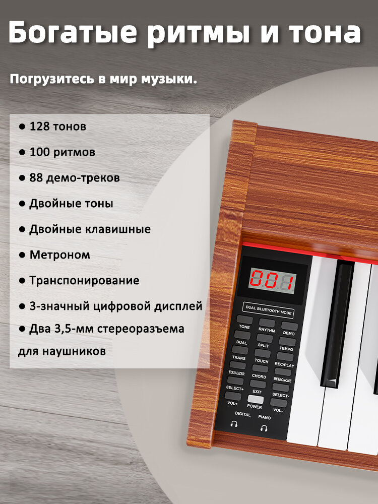 Синтезатор, 88 клавиш, с поддержкой Bluetooth, портативный дизайн