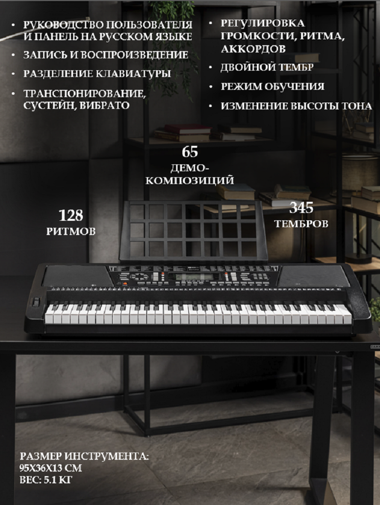 Синтезатор MusicHall Sonata, MIDI, 61 клавиша с активной клавиатурой, черный информация: