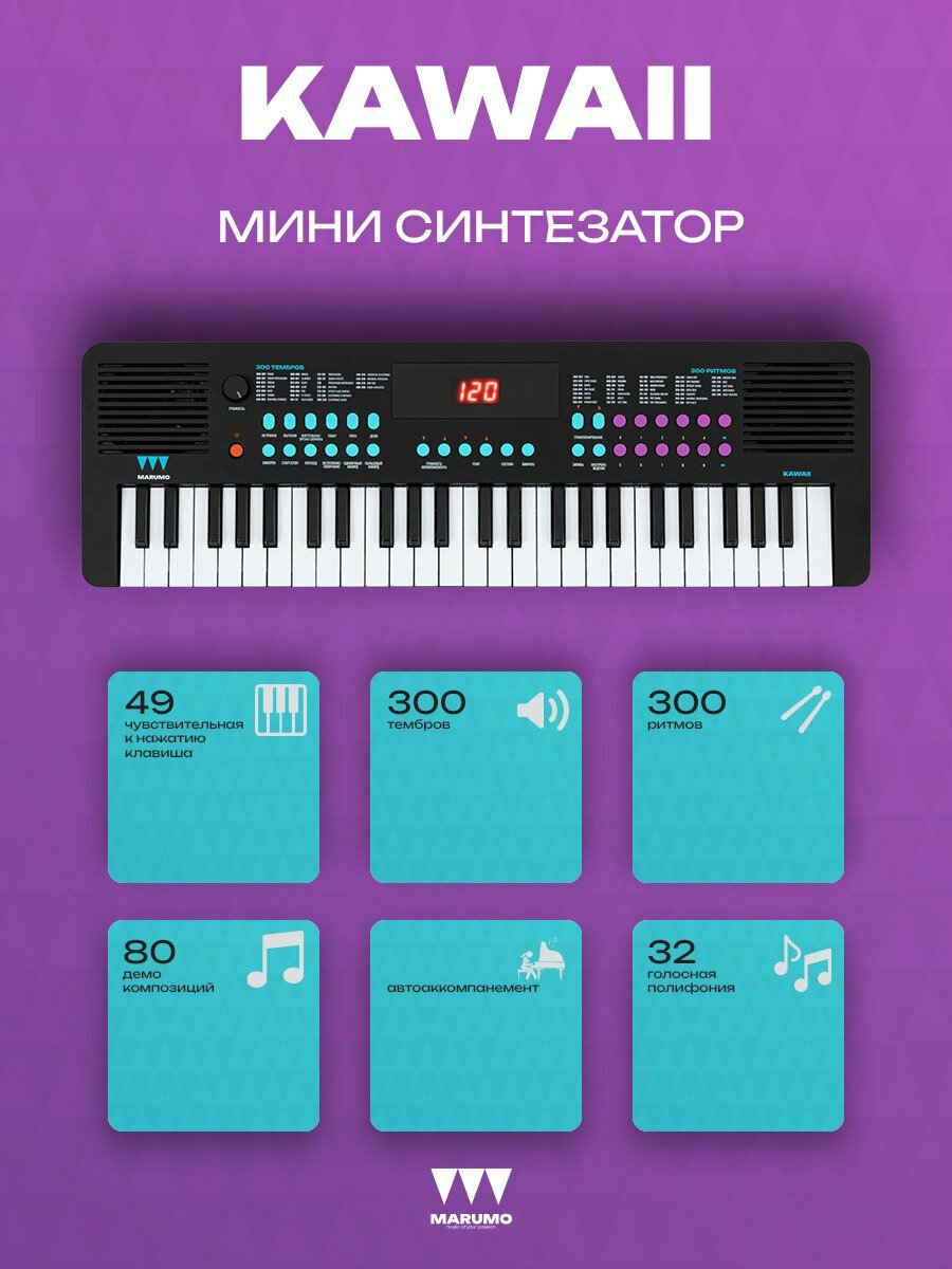 Синтезатор цифровой MARUMO KAWAII черный, цифровое пианино 49 клавиш информация:
