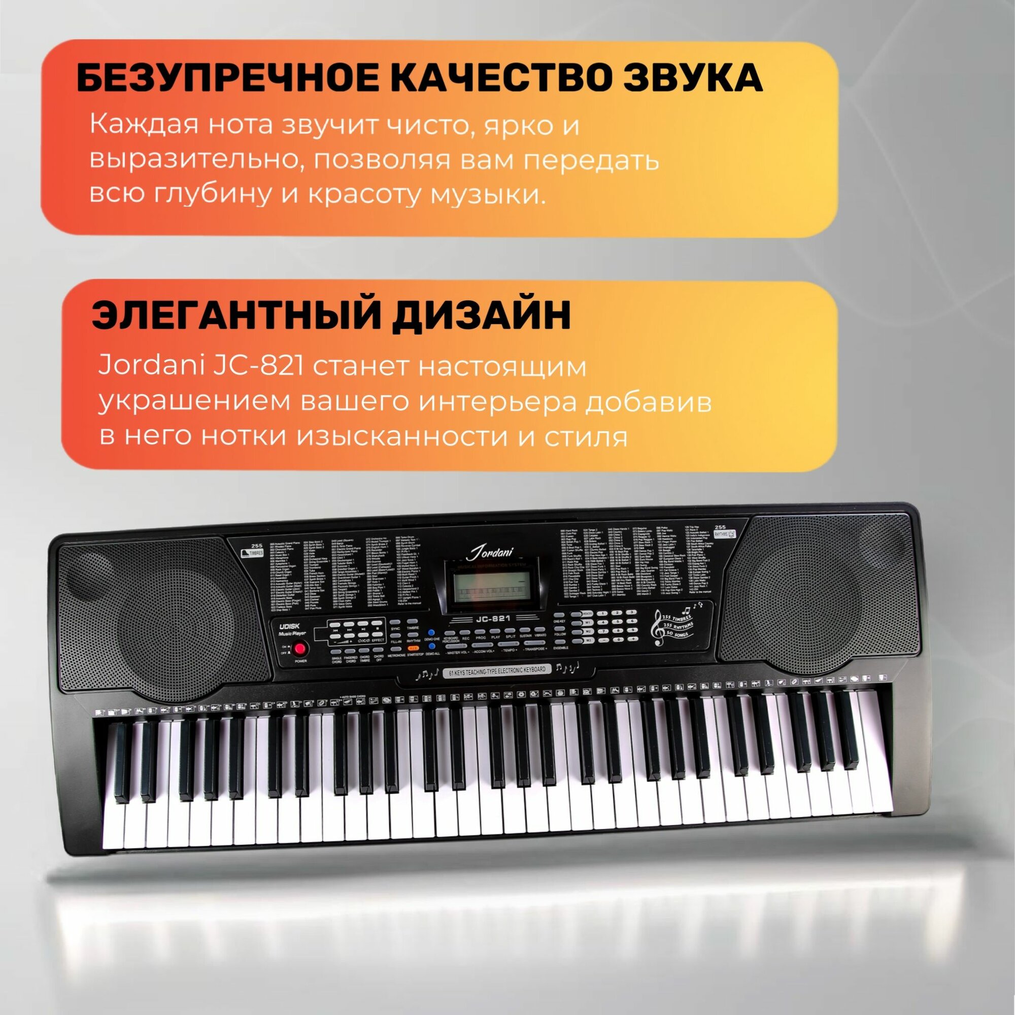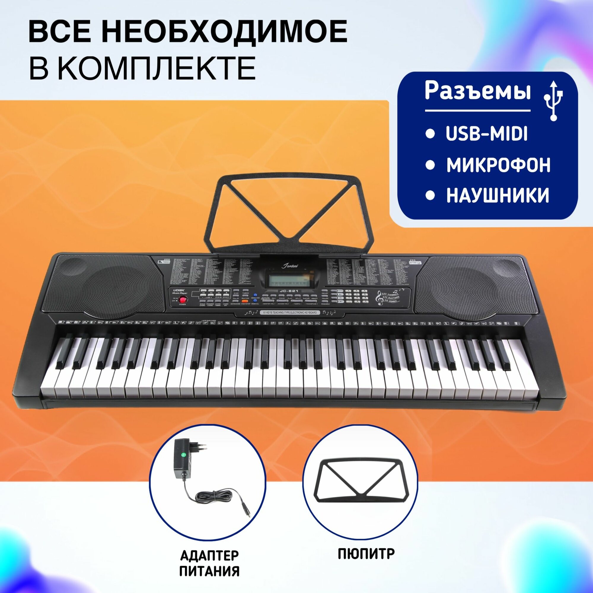 Синтезатор цифровой 61 клавиш Jonson&Co JC-821, (полноразмерные), чёрное информация: