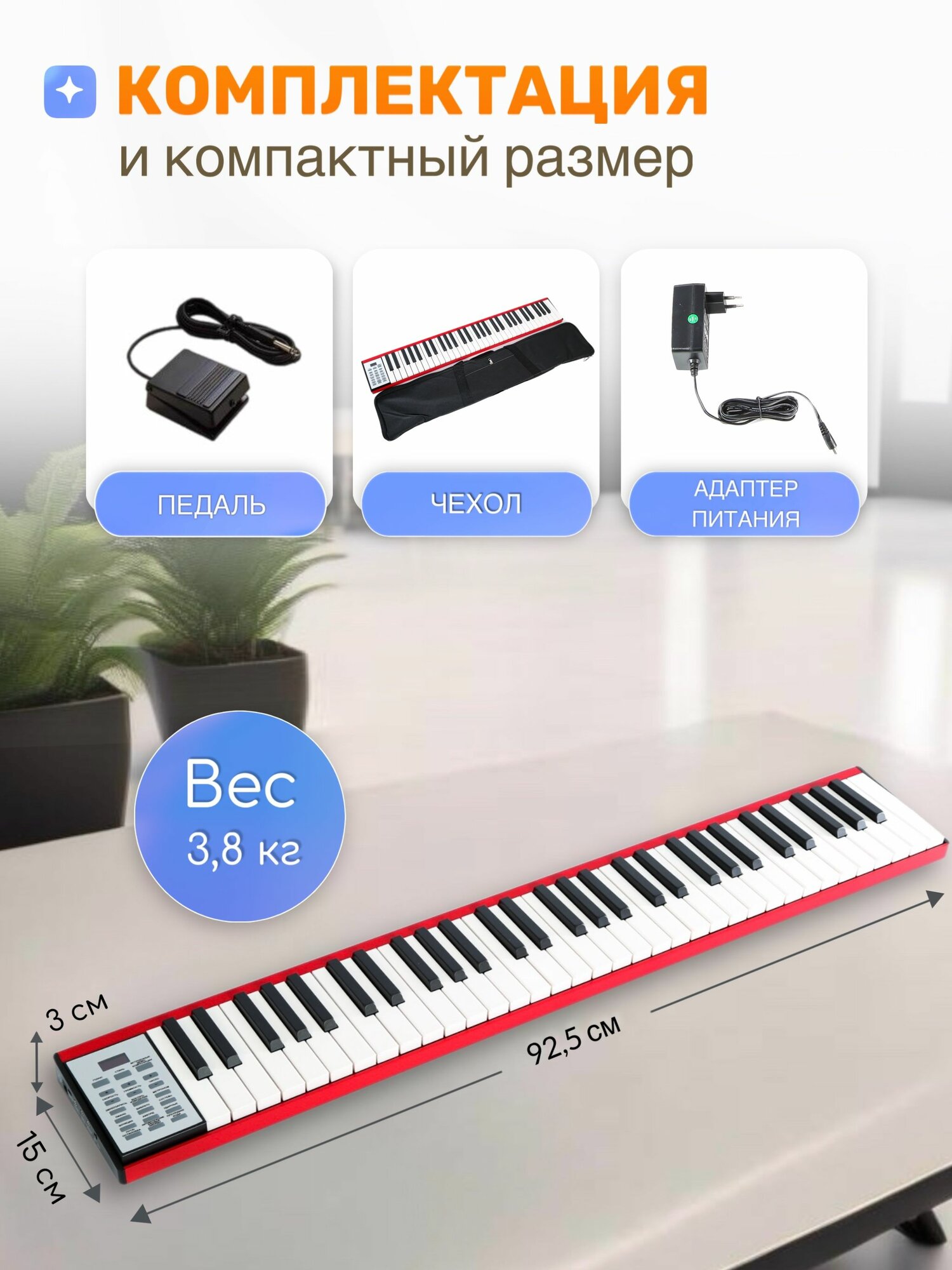 Синтезатор, 88 клавиш, с поддержкой Bluetooth, портативный дизайн