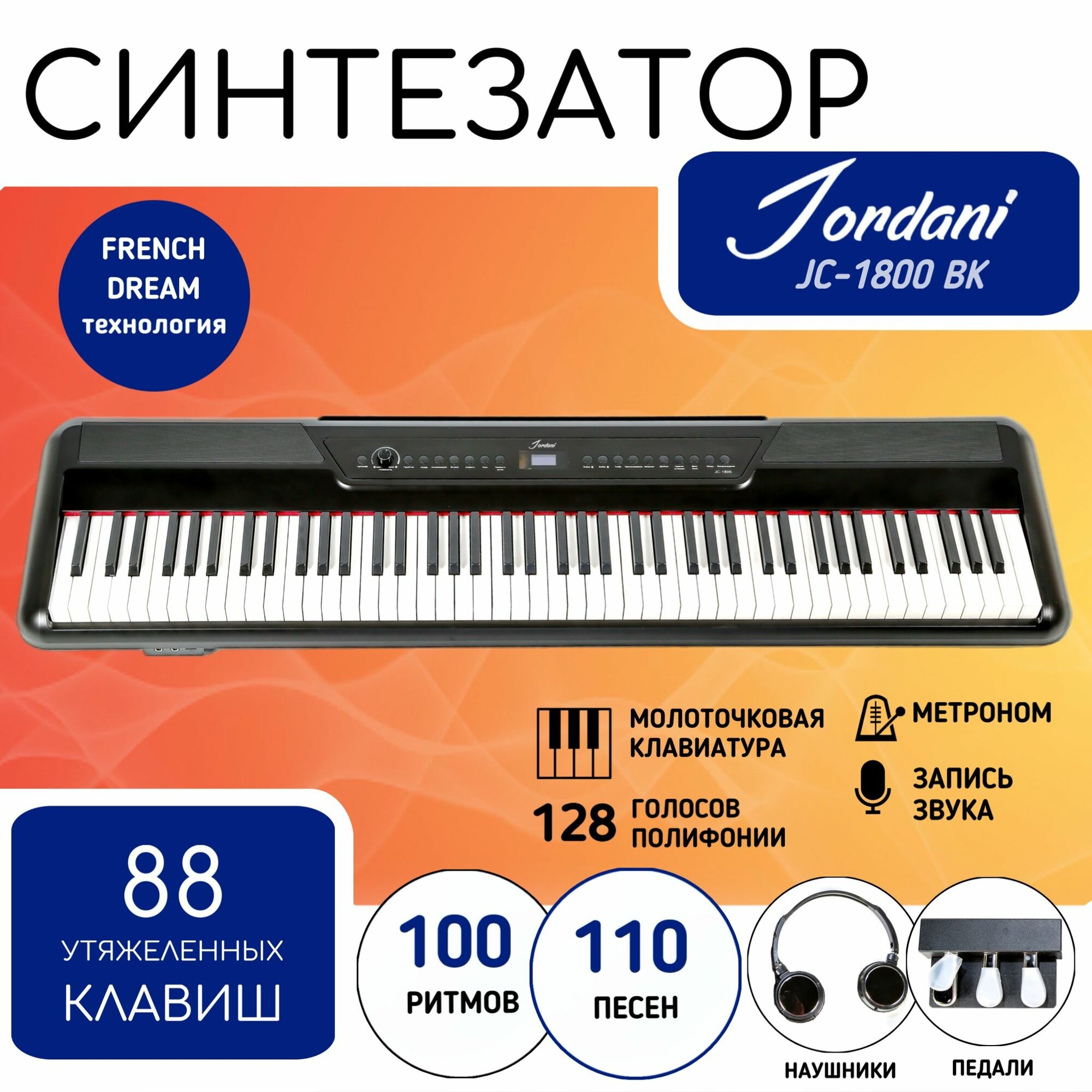 Синтезатор цифровой 88 клавиш Jordani JC-1800 BK (полноразмерные), чёрное информация: