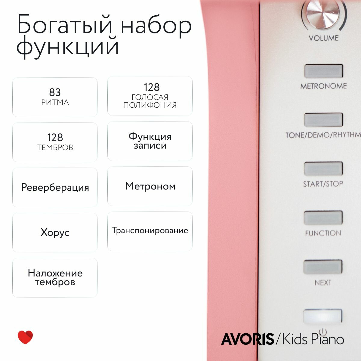 Цифровое пианино для детей Avoris Kids Piano PK (розовое) с банкеткой и наушниками в комплекте информация: