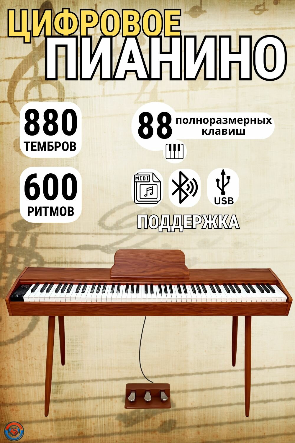 Отзывы на Цифровое пианино 88 клавиш с Bluetooth, 880 тембров, 600 ритмов, три педали, деревянный корпус, MIDI/USB для дома и студии