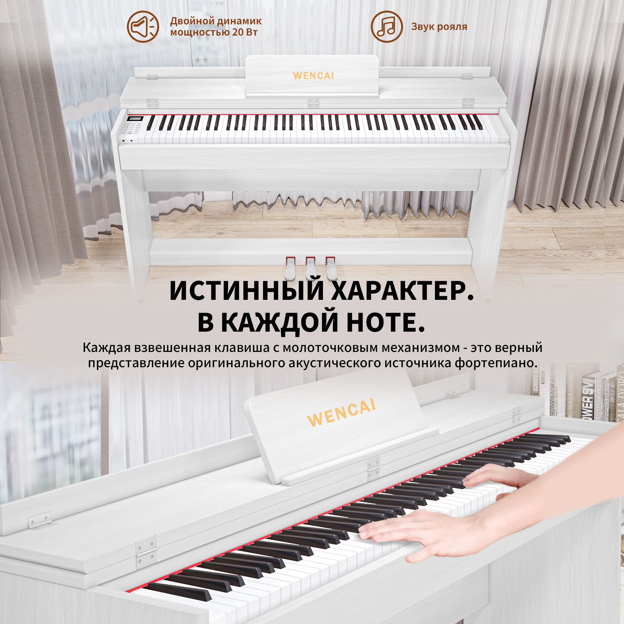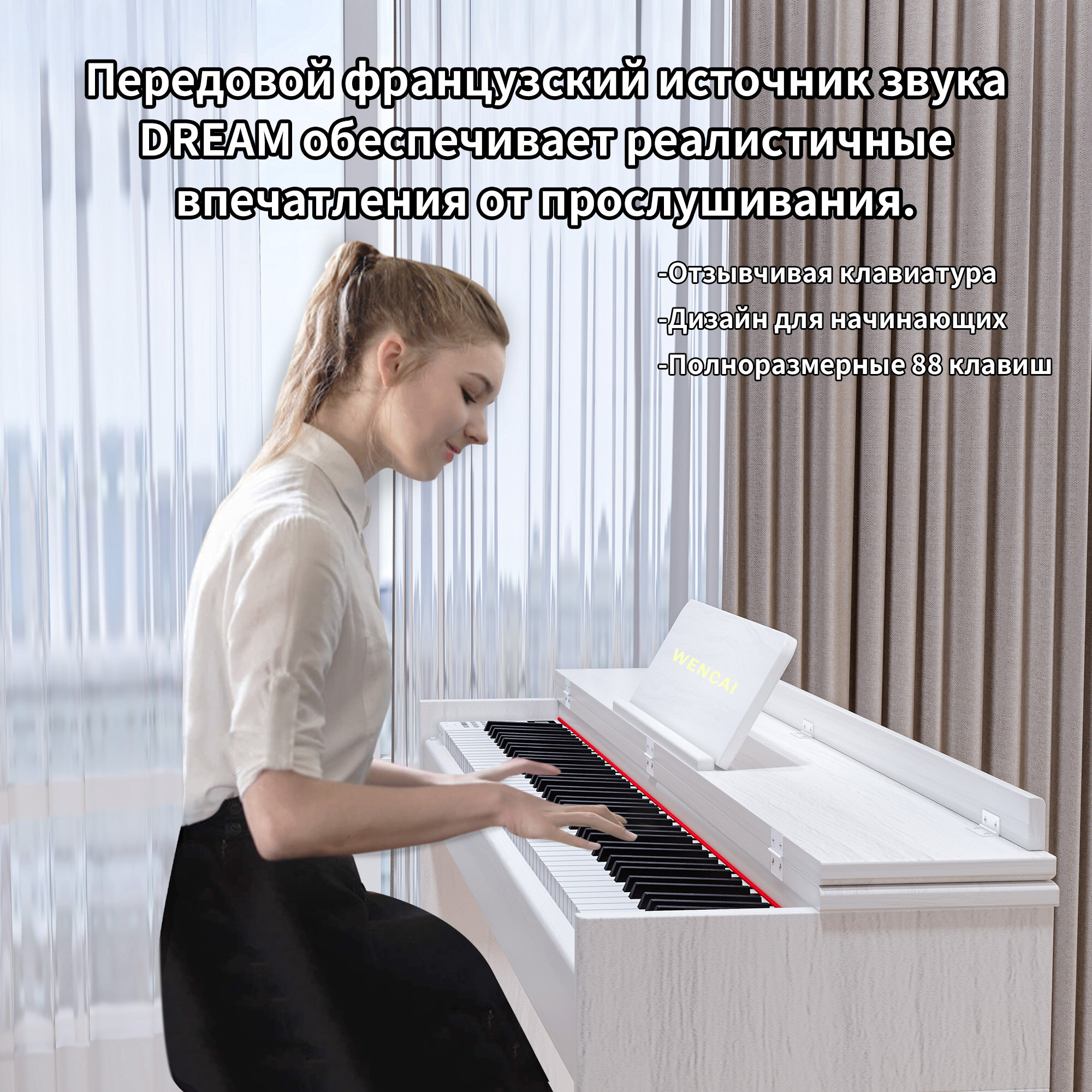 Отзывы на Цифровое пианино WENCAI BL-8812-белое, утяжеленная клавиатура, 88 клавиш