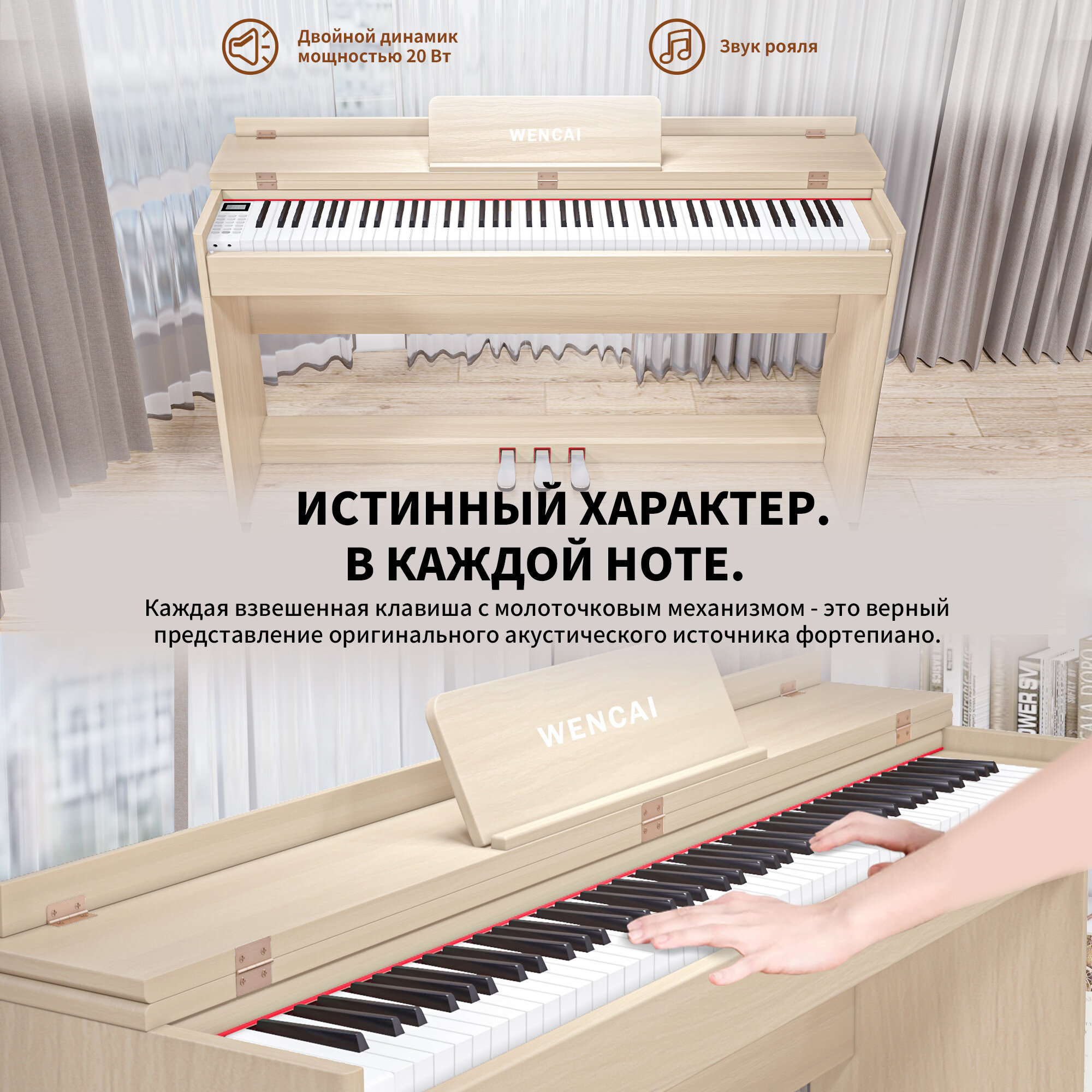 Цифровое пианино WENCAI BL-8812-светло-коричневое, утяжеленная клавиатура, 88 клавиш 55 000 ₽