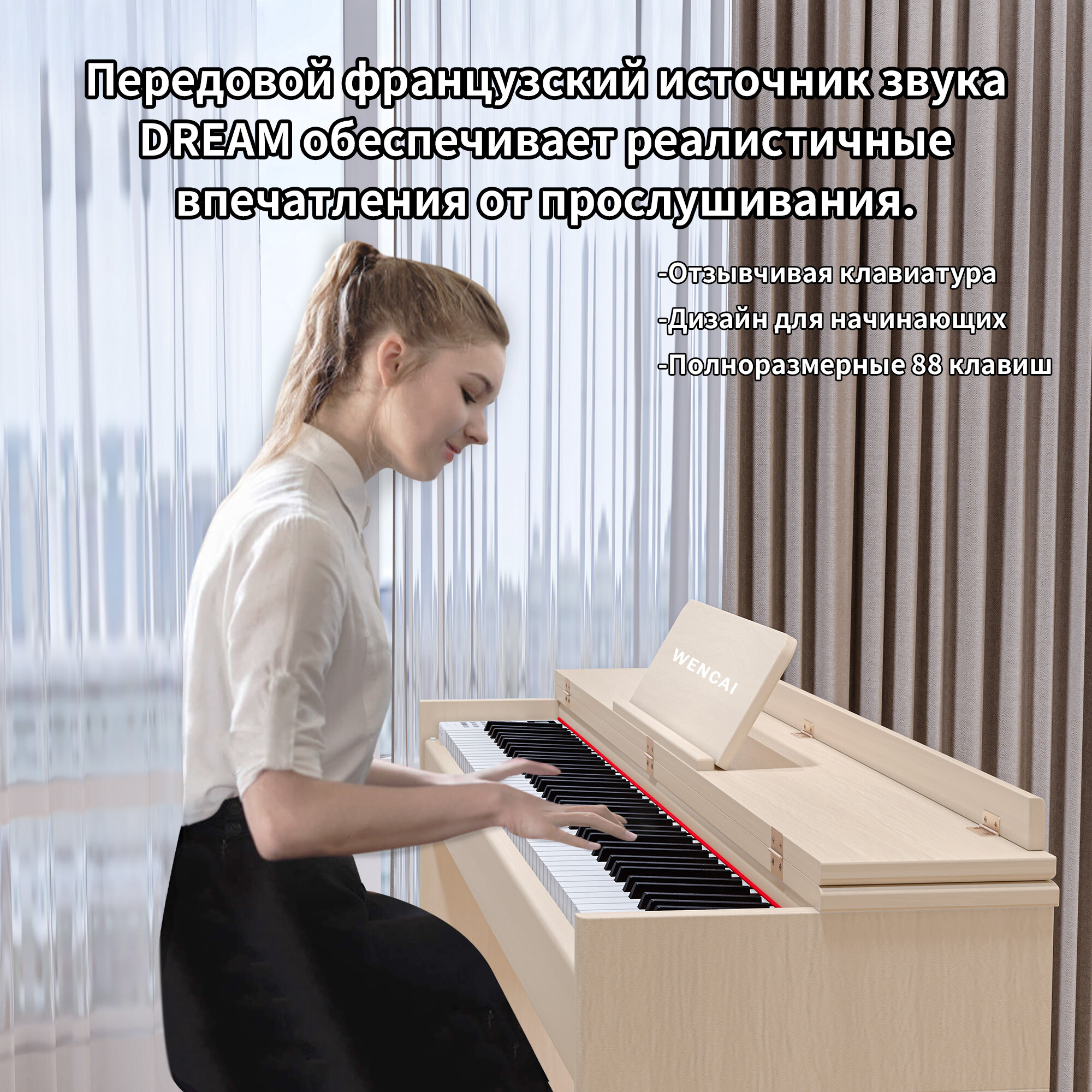 Отзывы на Цифровое пианино WENCAI BL-8812-бежевое, утяжеленная клавиатура, 88 клавиш